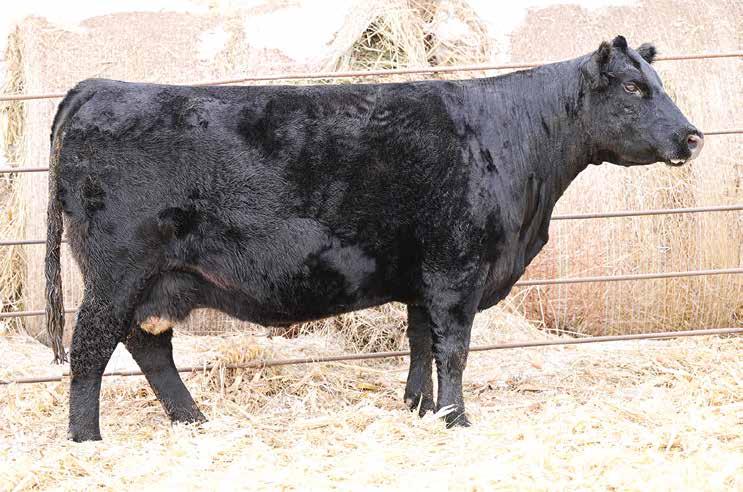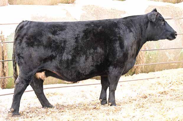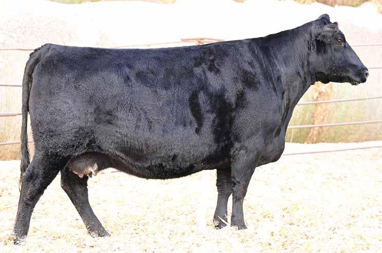 She is a stout framed, deep ribbed and long bodied matron descending to a great Angus cow sired by OCC Legend 616L. Dividend daughters are excellent females with beautiful udders. She is a big return kind of female!