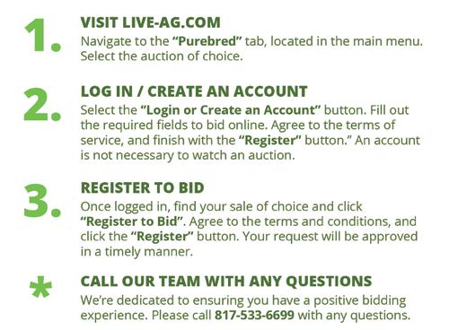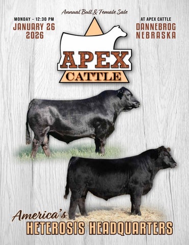 SALE ORDER The sale order will be posted on APEXCattle.com and LIVE-AG.com, as well as the APEX Facebook page prior to the sale. Printed versions will be made available for sale attendees.