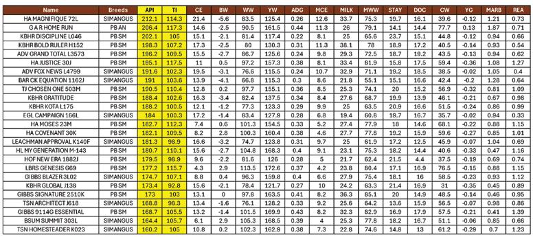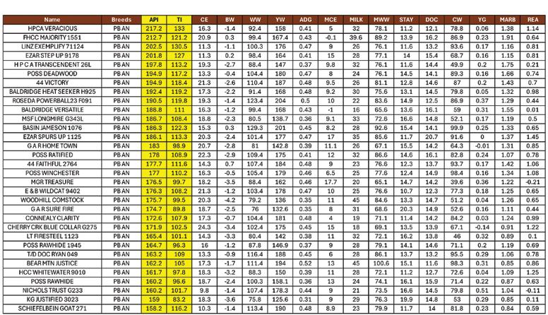 Two-Year Old Bull Ranking: #1 MCE and MARB, #4 ADG & #5 MILK EPDS plus #4