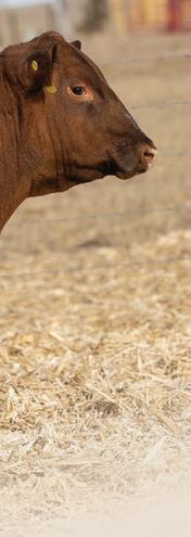 DNA: To most accurately represent the cattle in the o ering, each lot has been parent veri ed and tested free of genetic defects within their respective breed unless noted otherwise. Additionally, all bulls o er genomically enhanced EPD’s through Angus GS on the Angus Bulls and GeneSeek GGP on the Red Angus bulls to improve the accuracy of their performance predictors.