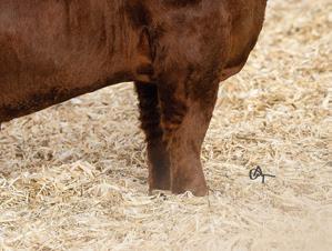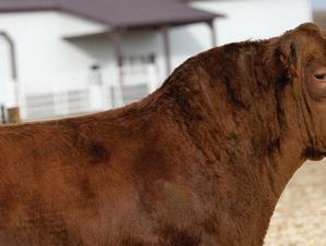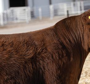Lot 83 is one of the feature highlights of this year’s o ering. is powerful Locomotion son is one of the stoutest and coolest designed bull calves we have ever o ered. He is explosive in his muscle shape, commanding in his presence, and tops it o with a perfect cherry red hair coat.