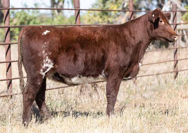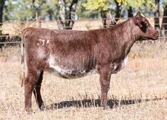 47 | NOVEMBER 5, 2022 WSCC STECK HOT SHOT 950G SBR MARIE 833F FREE K-KIM HOT COMMODITY SBR OBVIOUS 156A STECK CHERRI C 528 ET SBR MARIE 154 Y BW WW YW MK $CEZ $BMI $F 3.5 47 70 23 15.64 106.95 49.82 CONSIGNED BY: STANGL SHORTHORNS Bred to SBR Big Money 620J. Due 4/8/23. We like them as calves, we like them as bred heifers and we can’t wait to see them as cows … the Hot Shot genetics look to be promising, we think this heifer out of one of our top young cows will have a good future for her new owner. *X4326915 | C | 3/25/2021 | RWM | POLLED | SBR 133 SBR JASMINE 133J64 SBR ALL ACCESS 416D SBR IRENE 980 W JSF BROKER 157Z PROUD DAY 12 SBR MANDY 416B SBR IRENE 143 BW WW YW MK $CEZ $BMI $F 0 40 62 18 43.31 114.55 48.36 CONSIGNED BY: STANGL SHORTHORNS Bred to SBR Big Money 620J. Due 4/22/23. Balanced EPDs with a ton of longevity in this pedigree. Her dam is 12 years old and her granddam lists the breeder as Rick’s great uncle and founder of Stangl Shorthorns the late Orville Stangl. *X4325133 | C | 3/26/2021 | RED | POLLED | SBR 134 SBR IRENE 134J65 JSF TIMES SQUARE 120G ET SBR SUZY 529C SASKVALLEY TRADITION 106T JSF GOLDENROD 57U KL GOLD ROSE SBR SUZY 714 BW WW YW MK $CEZ $BMI $F -1.7 44 63 35 48.2 135.19 50.89 CONSIGNED BY: STANGL SHORTHORNS Bred to JSF Dow Jones 130J. Due 3/18/23. A Plus heifer for your consideration, with her ranking in the top 10% of the breed in 7 traits and top 1% for stayability and milk it won’t take much considering to place your bid come sale day. Bred to Dow Jones her calf will be purebred. *XAR4325668 | C | 3/28/2021 | RED | POLLED | SBR 136 SBR SUZY 136J66 Service Sire - JSF Apache 114J 66