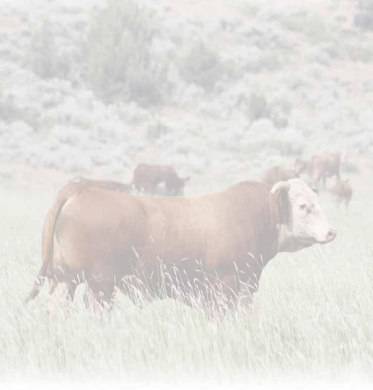 Representatives Kevin Murnin, American Hereford Association 406-853-4638 Jared Patterson, Western Livestock Journal ................................................ 208-312-2386 Matt Macfarlane, California Cattleman Magazine ..................................... 916-803-3113 Landon Andrews, American Angus Association ...................................... 801-592-7279 Sale Location Oroville Ranch, 3159 Nelson Ave, Oroville, CA Auctioneer Rick Machado .......................................... 805-474-9422 Office | 805-501-3210 Mobile Accommodations Holiday Inn Express, 550 Oro Dam Blvd E, Oroville 530-534-5566 Days Inn by Wyndam, 1745 Feather River Blvd., Oroville .................... 530 533-3297 Gold Country Casino, 4020 Olive Hwy. East, Oroville .......................... 800-334-9400 HEREFORD BREED AVERAGES CE BW WW YW MM UDDR TEAT FAT REA MARB BMI$ BII$ CHB$ 3.1 2.7 54 87 26 1.24 1.26 0.018 0.41 0.12 348 419 115 Watch and bid online for FREE! Visit LiveAuctions.tv Contact tech support at 682-816-4900 Watch and bid online for FREE! LiveAuctions.tv Contact tech support at 682-816-4900 Saturday, October 21, 2023 | Oroville, Calif. | Sale starts at 1 p.m.