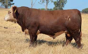 CE BW WW YW MM UDDR TEAT FAT REA MARB BMI$ BII$ CHB$ 3.6 2.9 58 90 25 1.50 1.40 0.021 0.56 0.00 361 428 119 ACT. BW ADJ. WW ADJ. YW ADJ. BF/RATIO ADJ. REA/RATIO ADJ. MARB/RATIO 75 652 1166 0.23 / 88 14.83 / 108 0.91 / 77 • Dark red, long hipped, rugged bull