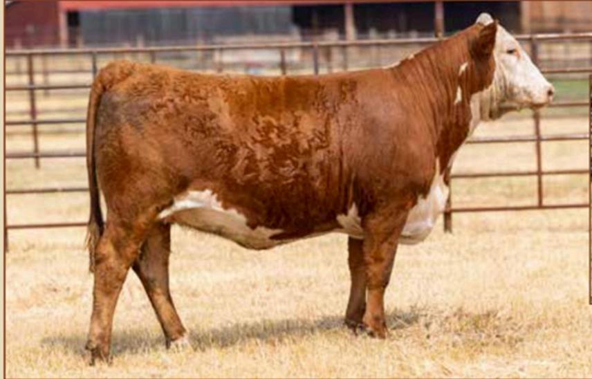 Su madre es una de las donadoras mas usadas en Colyer Hereford, hembra muy correcta y maternal proveniente de una de las lineas mas maternales de Barber Ranch