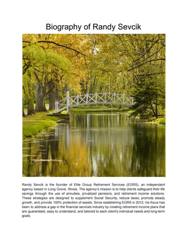 Randy Sevcik is the founder of Elite Group Retirement Services (EGRS), an independent agency based in Long Grove, Illinois. The firm is dedicated to helping clients safeguard their life savings through annuities, privatized pensions, and retirement income solutions designed to work alongside Social Security. Since starting EGRS in 2012, his mission has been to fill a gap in the financial services industry by offering retirement income plans that are simple, guaranteed, and tailored to each client’s specific needs, while also reducing taxes and ensuring complete asset protection. Over time, he has provided guidance to more than 300 clients. Randy earned a Bachelor of Arts degree in Education from the University of St. Thomas in St. Paul, Minnesota. His journey into the financial services field was shaped by a personal experience at a very young age. At five years old, he experienced the sudden passing of his father, an event that led to an immediate shift in his family’s financial situation. As the youngest of seven children, he witnessed how inadequate estate planning and sudden loss could quickly drain family assets, creating a climate of stress and uncertainty. This early hardship became his motivation to build a career helping others avoid similar challenges. As a retirement advisor, licensed financial professional, and retirement income planner, Randy Sevcik works with a clear set of principles: maximizing retirement income, preventing asset loss, and creating personalized legacy strategies. By applying these principles, he develops focused, actionable plans that align closely with each client’s goals for the future. Over the past five years, his expertise in retirement income planning—including wills, trusts, and tax strategies—has been highlighted in multiple television interviews. EGRS offers a range of services, including personal retirement planning, guaranteed income solutions, tax and cash flow management, and strategies for risk reduction.
