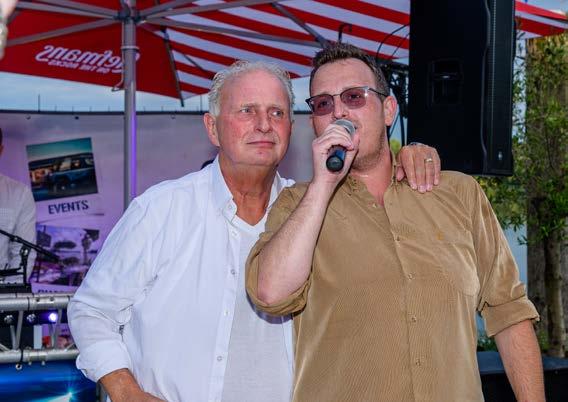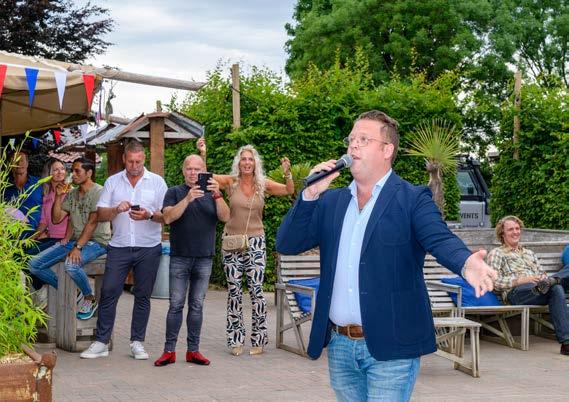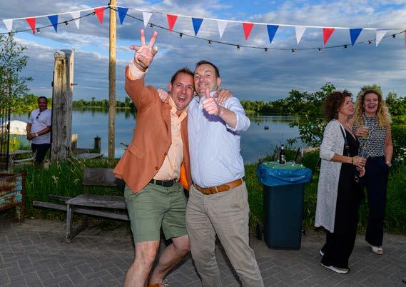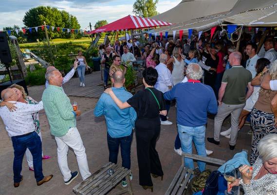 in de volksmond ook bekend als ‘het gat van Hage’. Deze bekende locatie is ruim, ligt aan het water met een strandje, heeft gezellige terrasjes, een dansvloer en alle verdere voorzieningen die je voor zo’n bijeenkomst nodig hebt. Je hebt hier echt het Ibizagevoel. Dirk: “Het weer zat natuurlijk enorm mee, lekker zomers én droog. Perfect voor deze locatie. En de livemuziek sloeg ook goed aan. Rutger van Barneveld deed de aftrap en Joey Hartkamp was, samen met zijn vader Emile Hartkamp, het sluitstuk. Ook Feest DJ Danny heeft zijn artiestennaam waargemaakt waardoor de sfeer er goed in zat. Af en toe zong ie zelfs mee met z’n plaatjes en dat deed ie overigens niet onverdienstelijk.”