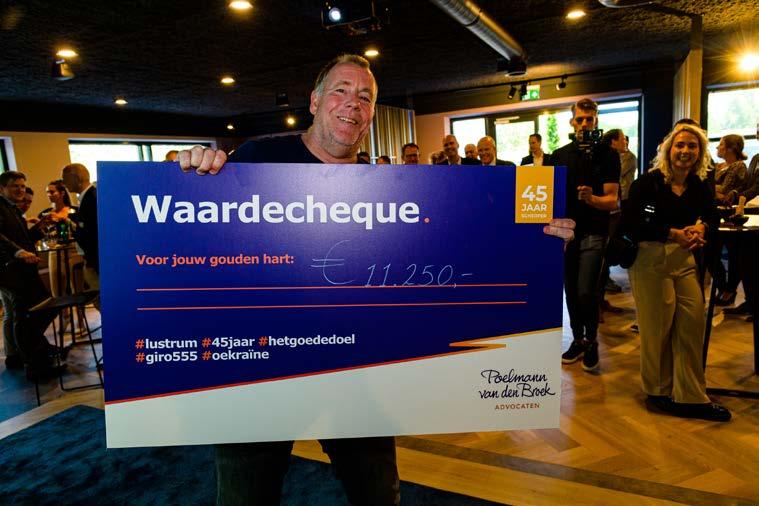 Net als Ron staat Poelmann van den Broek advocaten voor ‘lekker gewoon’ en werken met een hart voor de zaak én de mens. Hoe de avond dan beter af te sluiten dan met een veiling voor Giro 555? Poelmann van den Broek advocaten bedankt iedereen voor aangeboden kavels en donaties. Door de gulle giften en Ron’s veilingtalent is € 11.250,opgehaald voor Oekraïne. Alleen daarom al was het event zeer geslaagd.