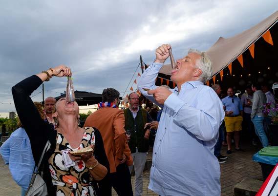 De mannen zijn ook blij dat het weer kon op deze manier. Dirk: “We hebben dit tijdens de afgelopen twee coronajaren ook georganiseerd in het kader van ‘we kijken niet naar wat er niet kan, maar naar wat er wel kan’. Dat lukte. Maar we moesten rekening houden met 1,5 meter tussen alle gasten en met vaste – en een beperkt aantal – zitplaatsen. Daarom heette het toen ook ‘een haringproeverij’ en geen party meer. Ook leuk, maar ik ben blij dat we van al die beperkingen af zijn.”