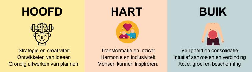 Met VerticalQ kijken we niet alleen naar wat iemand denkt of kan, maar ook naar wat iemand van nature voelt, waar zijn energie zit, en welke rol structuur speelt in zijn werkritme. De methode meet jouw talenten verdeeld over drie “intelligentiecentra”: hoofd, hart en buik.