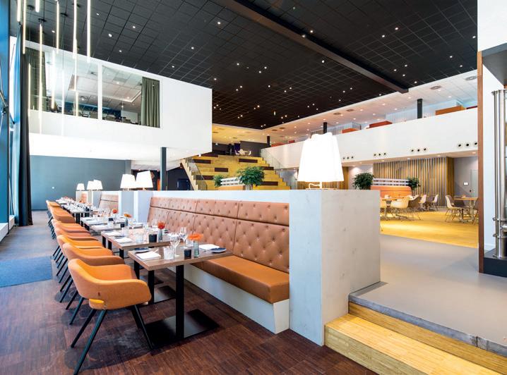 geopende eventspace op de benedenverdieping omvat vijf flexibele zalen plus een groot overdekt terras.