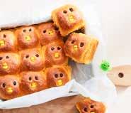 Maak kleine brioche paasbroodjes door een gezichtje te maken van (koffie)boontjes en maïs.