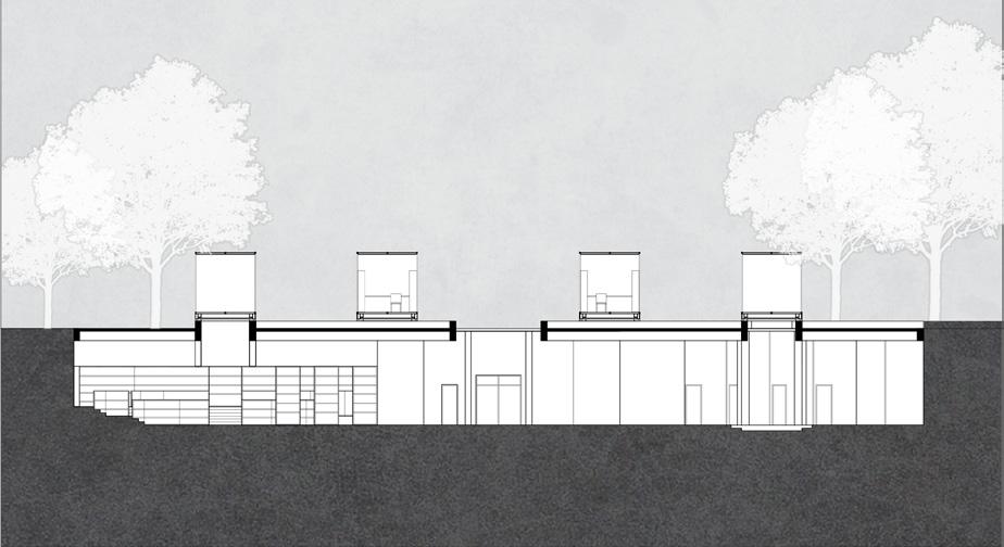 The underground of the square is a lending space and urban exhibition gallery, using scattered glass boxes as skylights for ventilation and lighting.