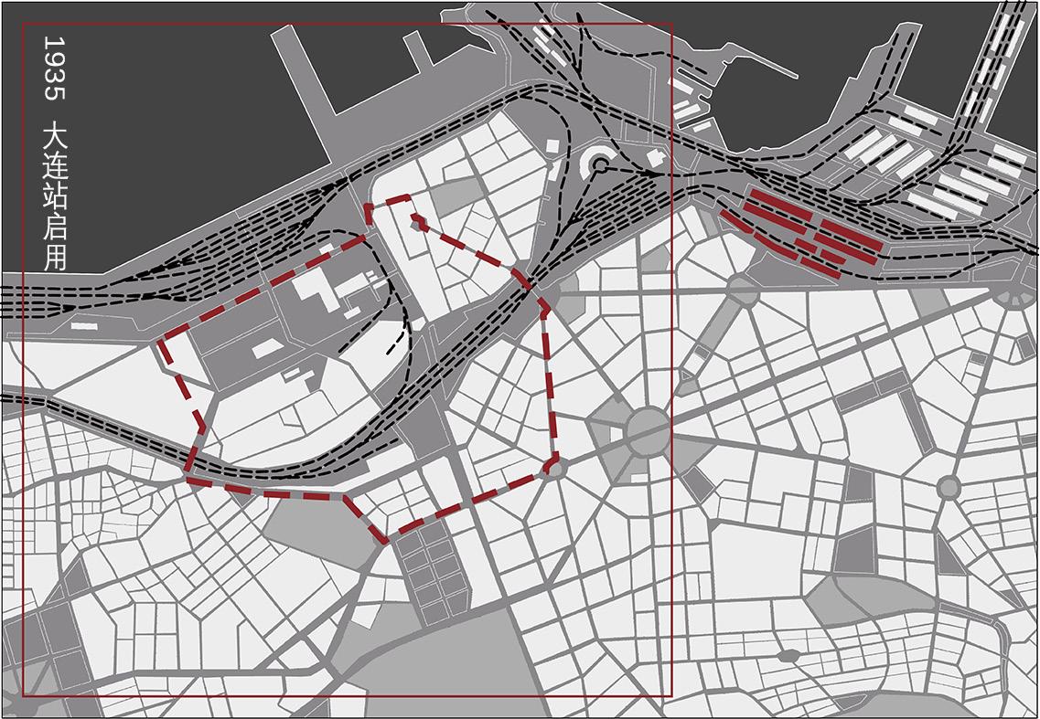 Since Dalian was established as a port and city in 1899, the urban landscape of the railway station area has been changing. The area north of the station was originally a bay. After land reclamation in 1921, it was used as a dock and the terrain was low-lying. After the opening of Dalian Station, it developed several times and eventually evolved into a seafood wholesale market and a hardware mall.