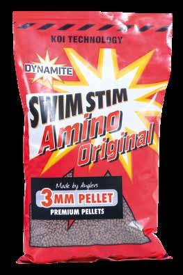 MATCH / COARSE MATCH / COARSE Swim Stim Amino Original Pellets & Expanders Swim Stim Red Krill Pellets & Expanders 43 44 DURABLE HOOK PELLETS • Super attractive high leakage hookbaits with premium fishmeal • Easy to hook & perfect for long casting • For pole, feeder, method feeder or waggler • Hook directly, hair-rig, band or use a quick stop Sizes available: 6MM 8MM SWIM STIM PRO-EXPANDERS • Soak or pump for the perfect hook pellets DURABLE HOOK PELLETS • Super attractive high leakage hookbaits with premium fishmeal • Easy to hook & perfect for long casting • For pole, feeder, method feeder or waggler • Hook directly, hair-rig, band or use a quick stop Sizes available: 4MM 6MM 8MM SWIM STIM PRO-EXPANDERS • Boosted with Krill oil for extra attraction • Soak or pump for the perfect hook pellets AMINO ORIGINAL PELLETS • The ultimate carp pellet for commercials • Premium ingredients & fishmeals and low oil content Our Koi Technology formula attracts and holds carp in your swim without over feeding • Boosts fish’s immune system - the ultimate fish friendly pellet • Available in 2mm - perfect for Method, Hybrid & Pellet feeders RED KRILL PELLETS • The ultimate carp pellet with natural Antarctic Krill & Krill Oil - perfect for commercials • Premium ingredients & fishmeals and low oil content Our Koi Technology formula attracts and holds carp in your swim without over feeding • Boosts fish’s immune system - the ultimate fish friendly pellet • Available in 2mm - perfect for Method, Hybrid & Pellet feeders RECYCLABLE PACKAGING RECYCLABLE PACKAGING CODE PRODUCT DESCRIPTION BARCODE PACK DY1402 Swim Stim - Red Krill - Pellets 2mm 900g x10 DY214 3mm 900g x10 DY215 6mm 900g x10 DY216 8mm 900g x10 DY1436 Swim Stim - Red Krill - Durable Hook Pellet 4mm Pot x8 DY1437 Durable Hook Pellet 6mm Pot x8 DY1443 Durable Hook Pellet 8mm Pot x8 SMDY424 Pro-Expander - Red Krill 4mm 300g x12 SMDY425 Pro-Expander - Red Krill 6mm 300g x12 CODE PRODUCT DESCRIPTION BARCODE PACK DY1401 Swim Stim - Amino Original - Pellets 2mm 900g x10 DY097 Swim Stim - Amino Original - Pellets 3mm 900g x10 DY098 Swim Stim - Amino Original - Pellets 6mm 900g x10 DY099 Swim Stim - Amino Original - Pellets 8mm 900g x10 DY1433 Durable Hook Pellet 6mm Pot x8 DY1441 Durable Hook Pellet 8mm Pot x8 SMDY420 Pro-Expander - Amino Original 4mm 300g x12 SMDY421 Pro-Expander - Amino Original 6mm 300g x12