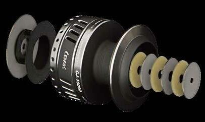 DFD incorporates both surfaces of the spool to maximize high-end drag pressure, efficiency & overall smoothness. Mounted in the top of the spool & protected by the Hydro Block system is a multi-disc felt drag system that works in conjunction with a secondary drag system that is mounted under the spool. Even pressure is applied to both surfaces of the spool for maximum stability.