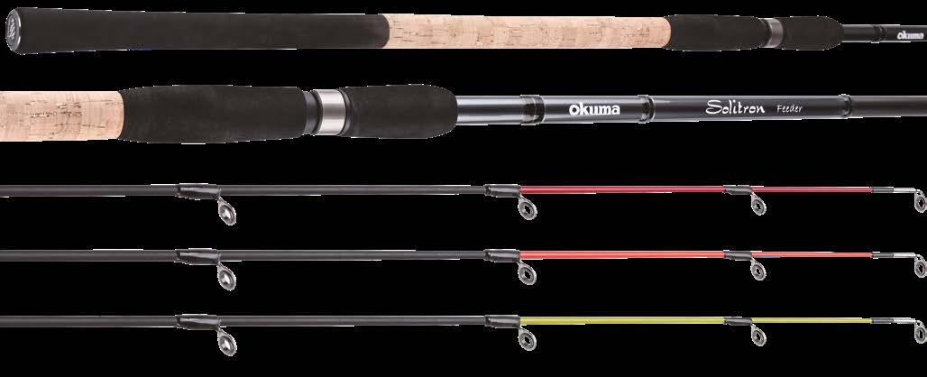 Slim and balance carbon blank construction • Progressive action • Supplied with 3 solid tips in tube • Quality stainless steel frame guides • Polished Titanium Oxide guide inserts • Okuma DPS reel seat • Quality cork and EVA handles • Supplied in quality rods bag