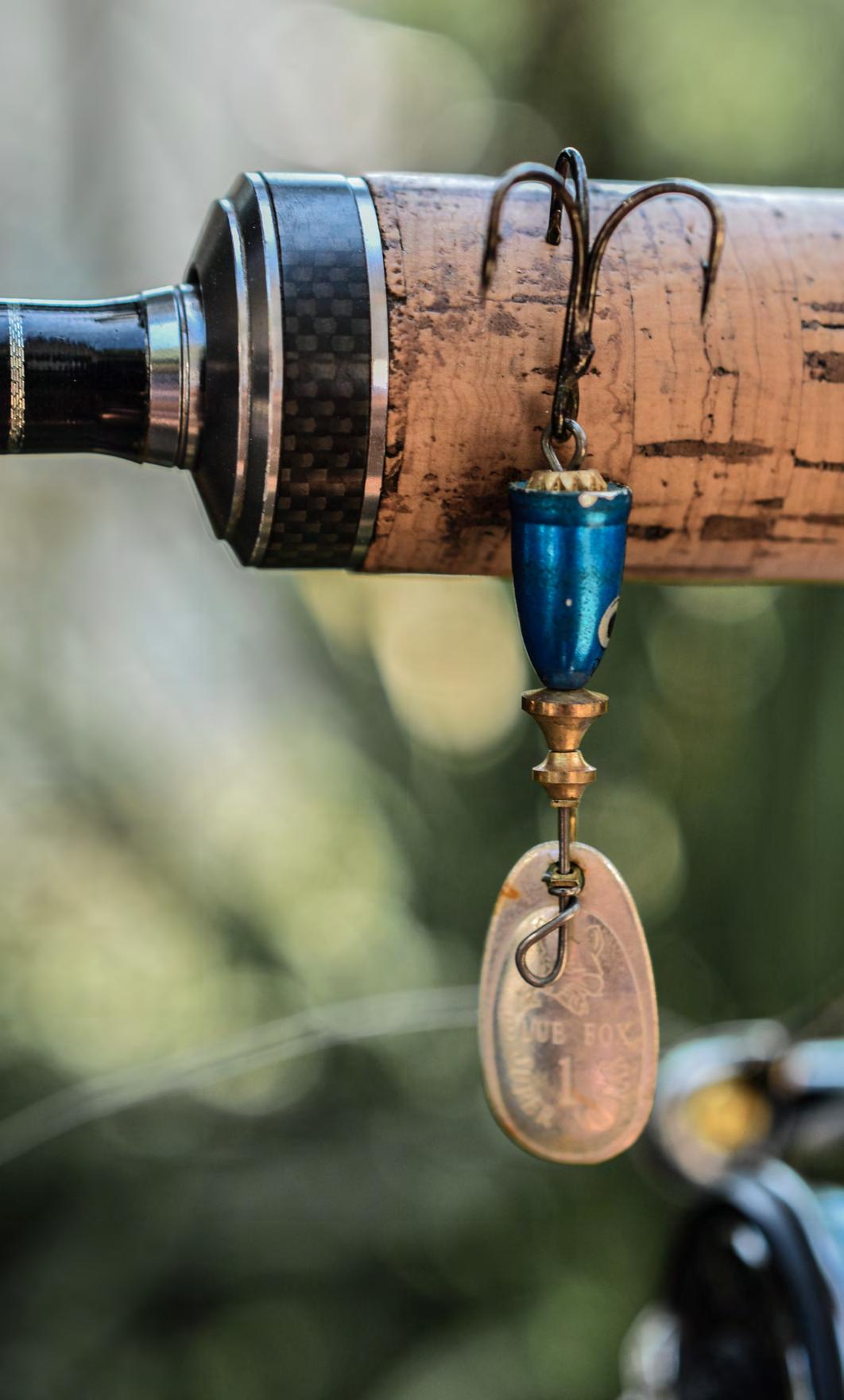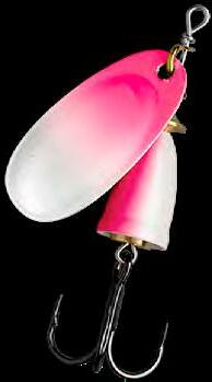 Palette orientée à 45° pêchant entre 60 cm et 1,20 m Corps breveté en deux parties en laiton usiné Engrenage à cliquetis en laiton à rotation libre Axe en acier inoxydable Motifs imitant les aurores boréales avec des finitions de haute qualité Équipées d’hameçons VMC