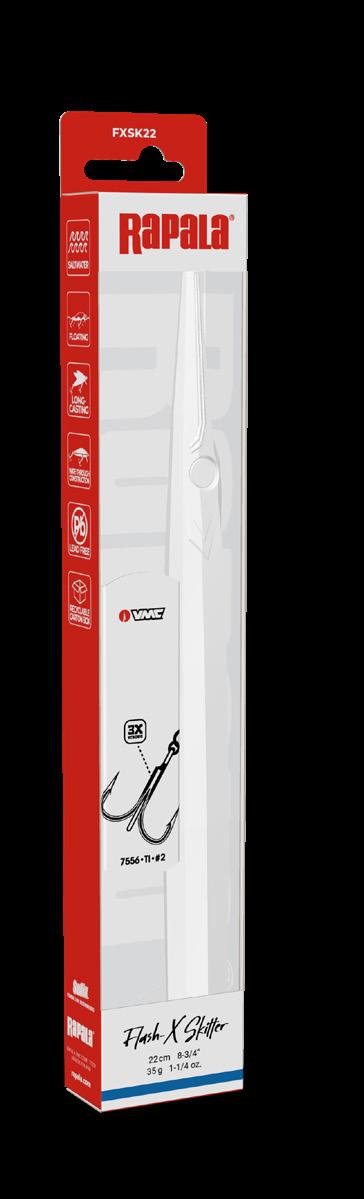 AYU - Ayu; BFH - Baitfish; BSRDL - Live Blue Sardine; CLN - Clown; FHC - Flake Hot Chartreuse; GHS - Ghost Sandeel; MBS - Moss Black Shimmer; MU - Mullet; PLD - Pilchard; PW - Pearl White; RH - Red Head; SFCU - Silver Fluorescent Chartreuse AYU BFH BSRDL CLN FHC GHS MBS MU PLD PW RH SFCU 4 NOUVEAUTÉ 2023 Modèle Caractéristiques Profondeur de nage Taille Poids Hameçons PXRPS107 Flottant Surface 10,7 cm 21 g Deux No.3 PXRPS127 Surface 12,7 cm 26 g Trois No.3 Leurre de surface | Action Walk-The-Dog | Armature traversante | Billes bruiteuses à double fréquence | Se lance très loin | Corps en plastique durable avec pilier interne | Sans plomb | Corps translucide texturé avec finitions ultra détaillées | Nouvel œil holographique 3D | Hameçons VMC® 7548 TI