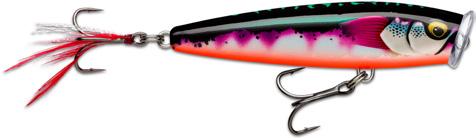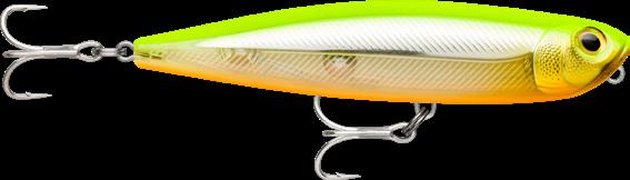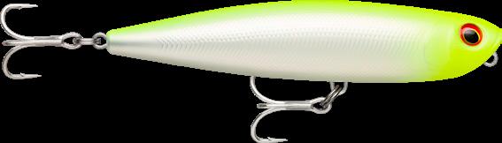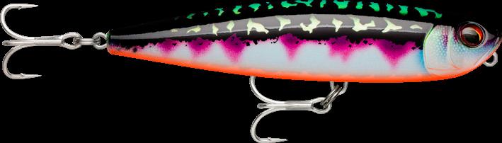 Leurre de surface | Action Walk-The-Dog | Armature traversante | Billes bruiteuses à double fréquence | Se lance très loin | Corps en plastique durable avec pilier interne | Sans plomb | Corps translucide texturé avec finitions ultra détaillées | Nouvel œil holographique 3D | Anneaux brisés ultra solides | Hameçons VMC® 7556 TI 3X