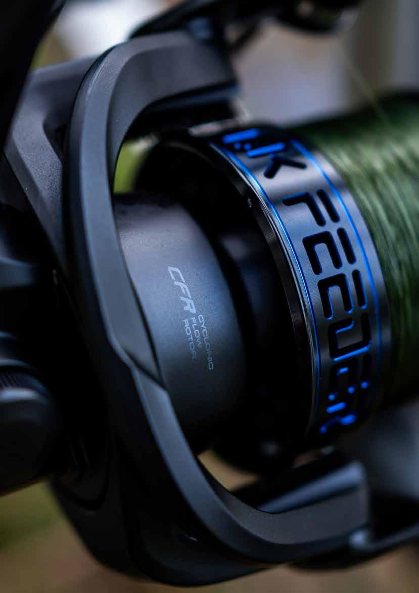 Le Cyclonic Flow Rotor (CFR) a été conçu pour créer un flux d’air « cyclonique », ce qui augmente considérablement le volume d’air traversant le rotor ajouré. Cette conception éprouvée permet un temps de séchage beaucoup plus rapide du moulinet, minimisant ainsi les risques de corrosion.