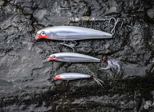 Balsa body • Heavy-duty split rings • Wire-through construction • Targeted for Trout and Perch • VMC® Black Nickel hooks • Sinking