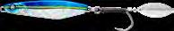 Le Dingo Metal Jet se caractérise par une tête concave et profilée. Les trous à l’avant provoquent une traînée de bulles. Lisse, chromée et en laiton usiné, sa tête est également très lumineuse. Sa jupe est de très haute qualité, ultra scintillante et aux couleurs très attractives. Monté avec un monofilament Sufix de 40lb et un hameçon VMC Perma Steel.