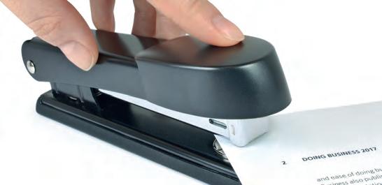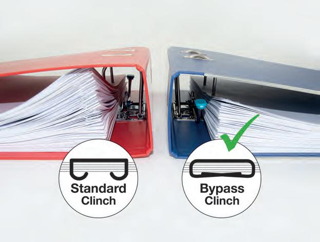 The flat clinch mechanism flattens the staple legs on the reverse side of the paper, to avoid sharp edges and achieve neat paper stacking.