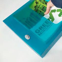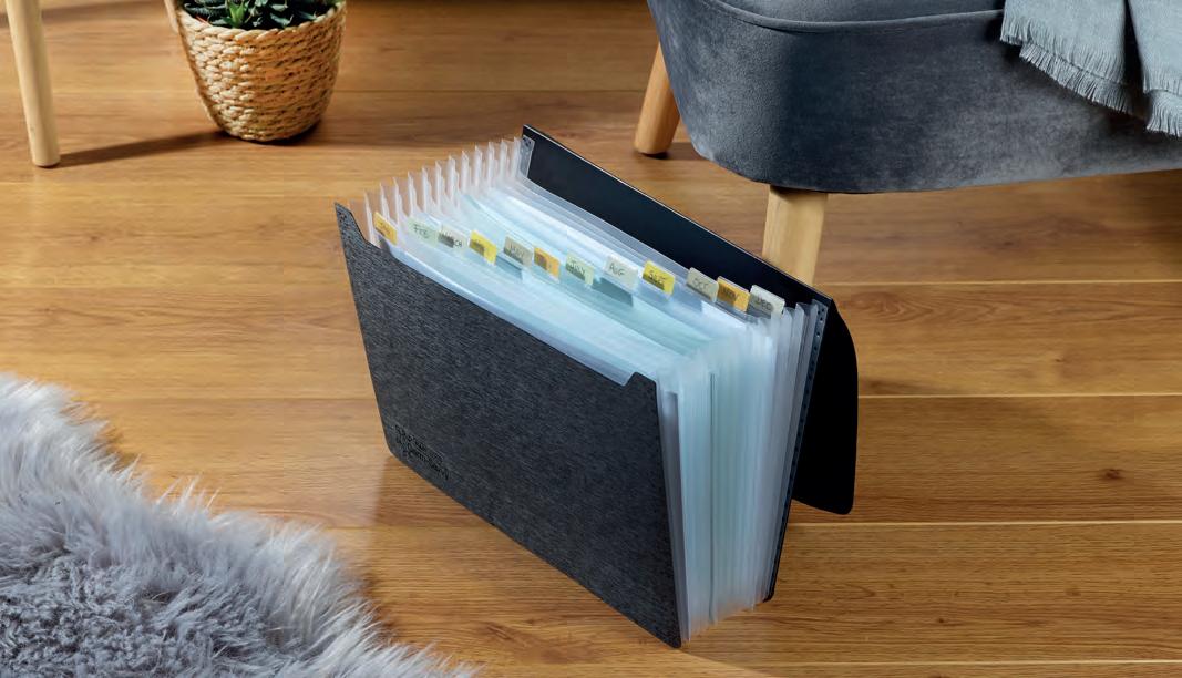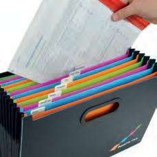 Rigid, durable and portable folder with 13 expanding sections, each expanding to 1.8cm