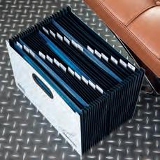 Luxurious sewn edges with soft-touch contrast trim 13 & 24 compartment files come with convenient carry handle