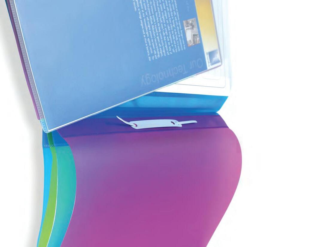 Lightweight, flexible, A4 polypropylene display book in translucent colours