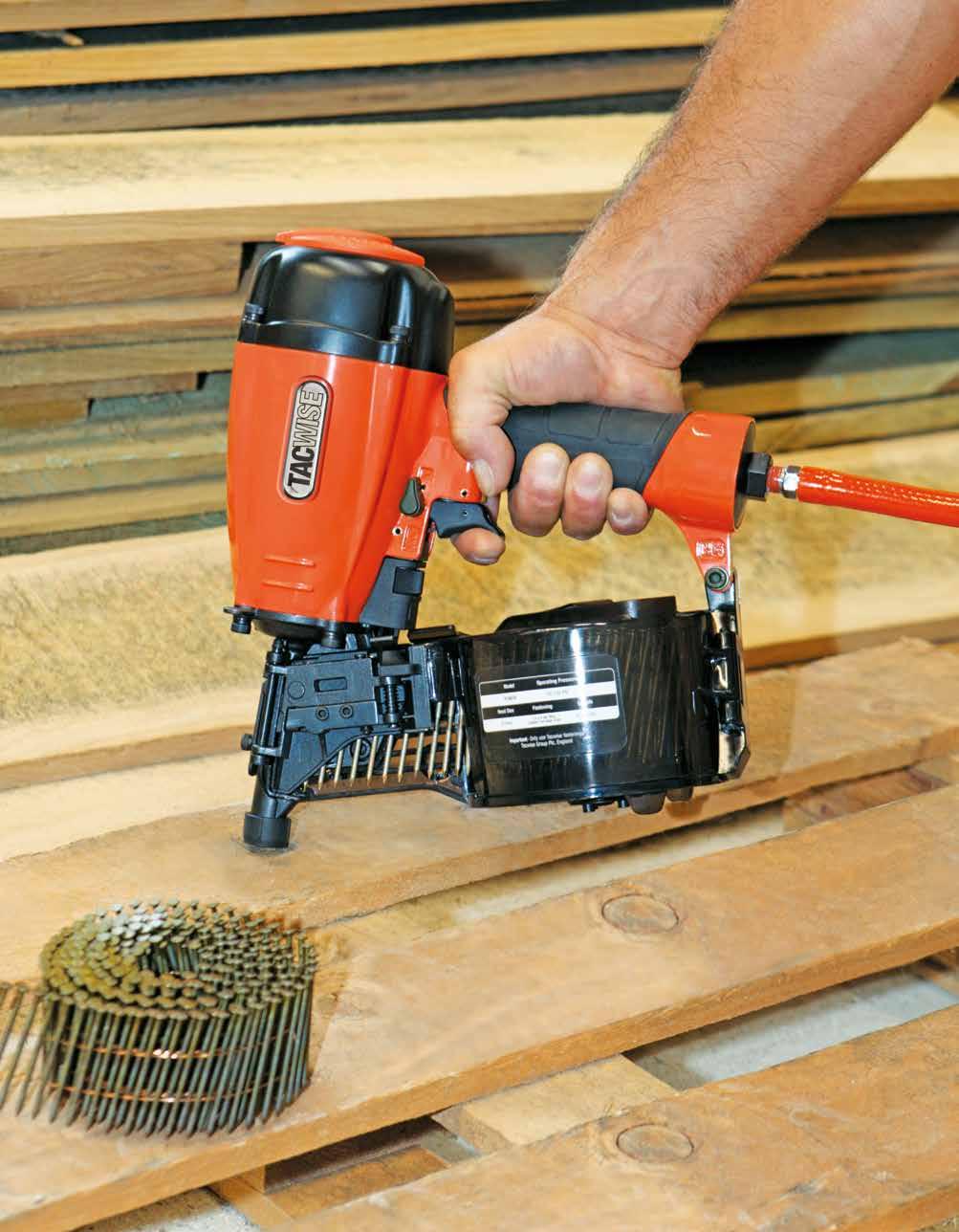All Tacwise coil nailers up to 90mm are light enough for single-handed operation.