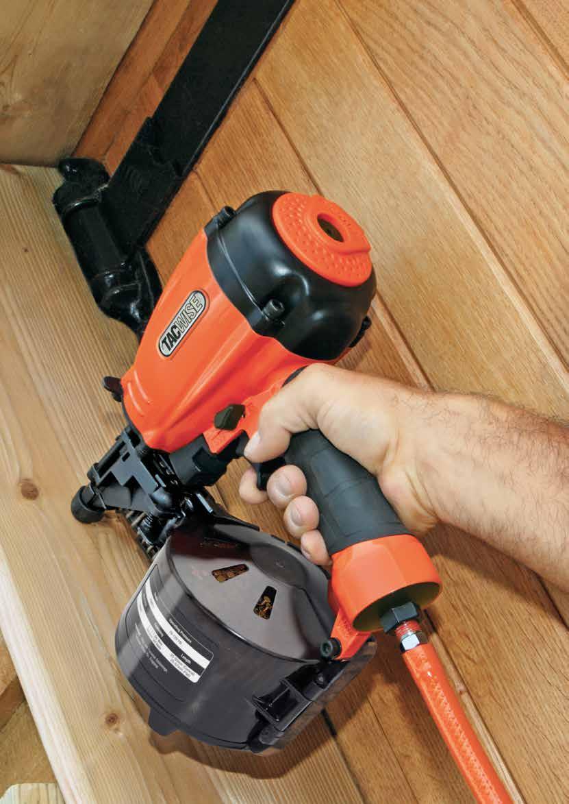 Most Tacwise coil nailers fire 4+ nails per second and can be used single-handedly. This is because lightweight magnesium is used to manufacture many of the tool bodies and triple hardened internal parts facilitate rapid firing and excellent durability. Ergonomic design provides great balance and comfort. Neat touches, such as external top cap crash bars help to ensure less downtime than other nailers.