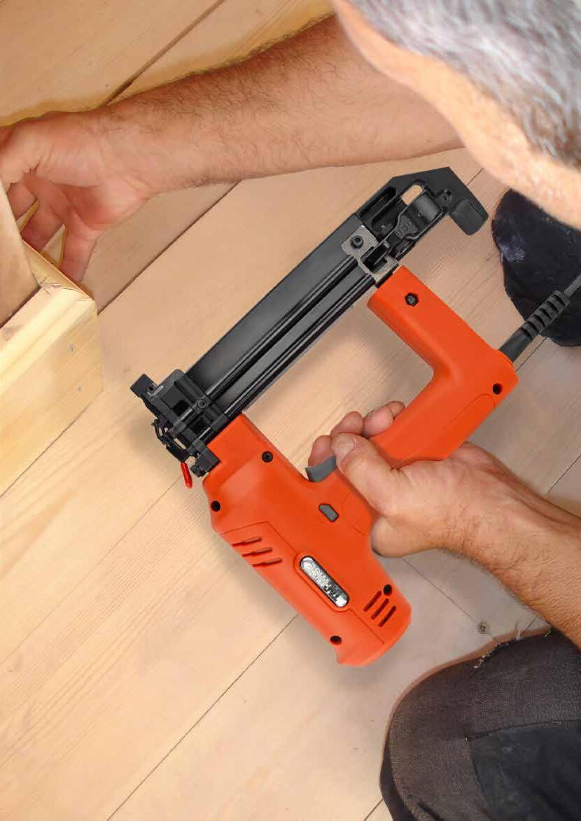 Versatility at its best. Uses 20-64mm nails without requiring any magazine adjustment. Features a nailing depth control and a special front opening jam clearance system to keep ‘downtime’ to a minimum.