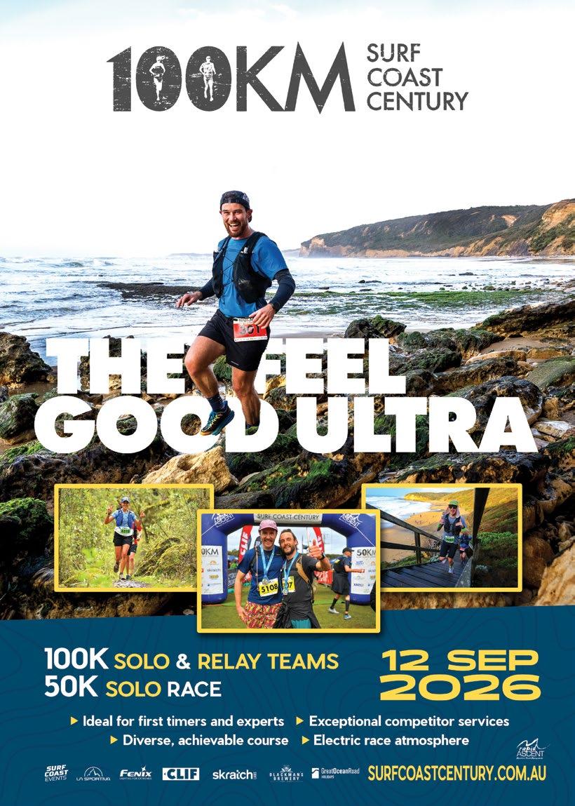 A spectacular 100km and 50km trail run along Victoria’s surf coast and wildflower hinterland with an incredible race atmsophere - known as the Feel Good Ultra! Do it as an individual and tick over the whole 100km solo or join up with some friends in a relay team of up to 4 and run 25km each.