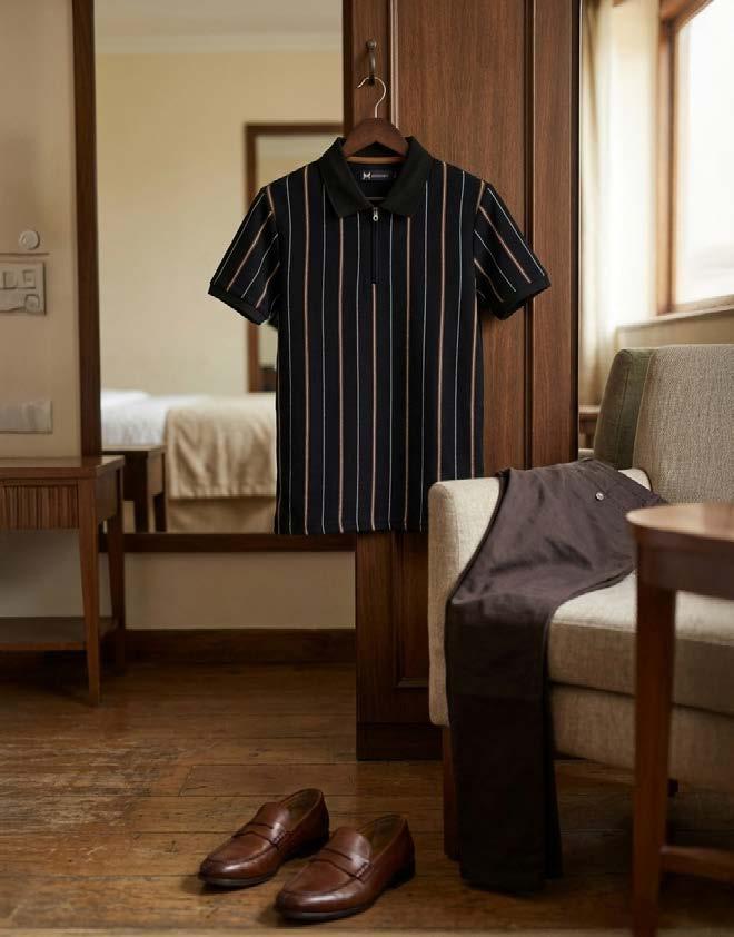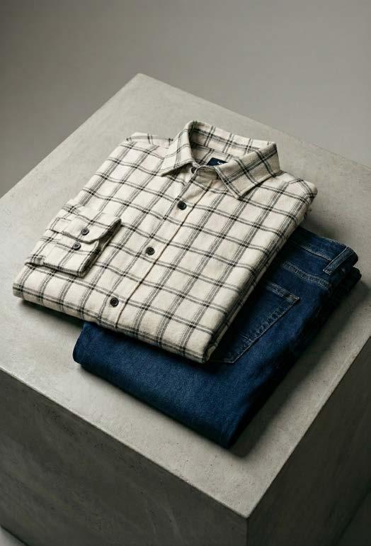 Rich dark tones and classic neutrals drawn from the landscape form the core palette, complemented by subtle accents that add depth without distraction. Silhouettes are refined and dependable, with an emphasis on comfort, versatility, and everyday wear.