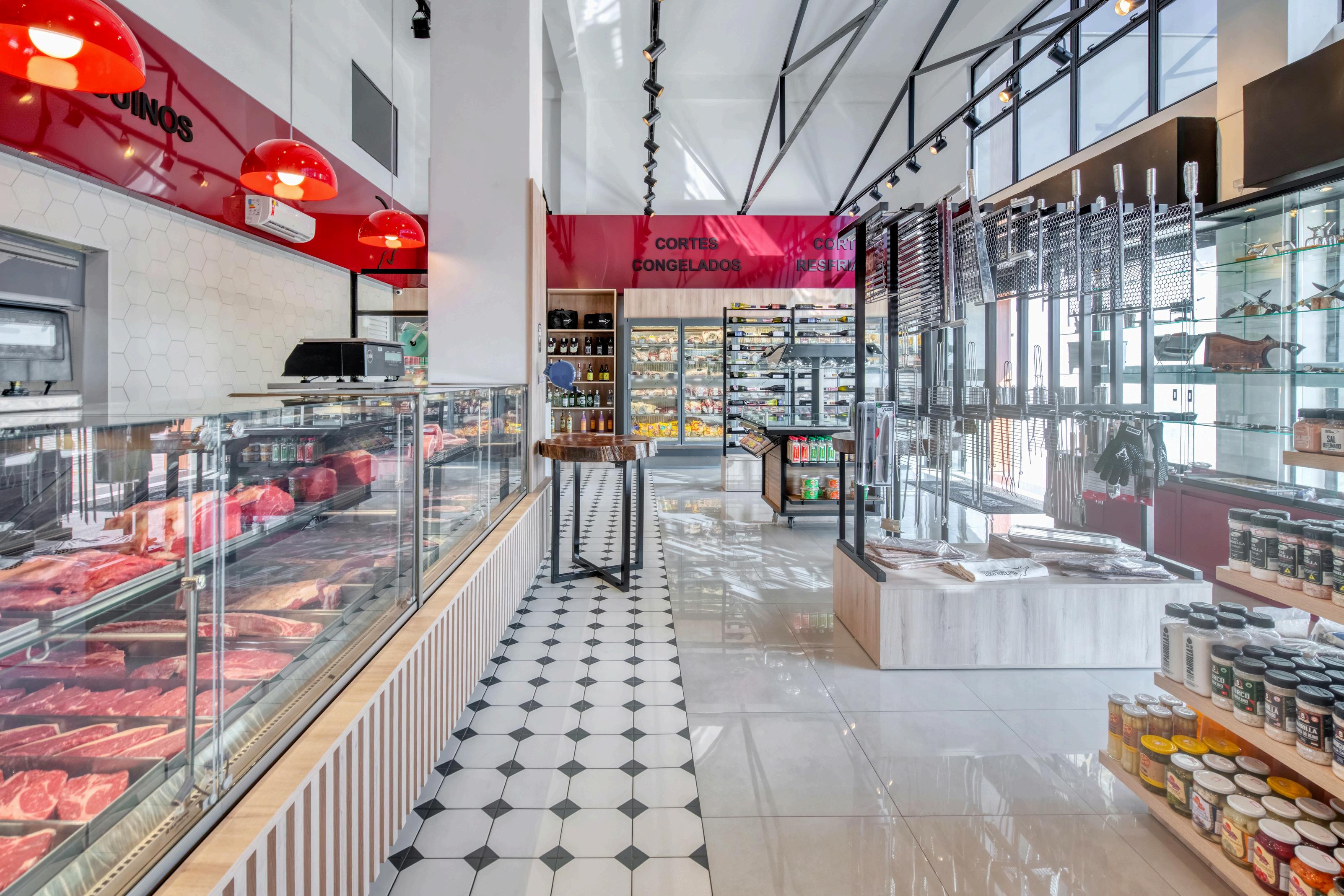 Com a funcionalidade bem estabelecida, pudemos nos concentrar no coração do projeto: a loja Criamos um circuito intuitivo, onde os clientes circulam confortavelmente pelos produtos, desde cortes especiais até temperos e bebidas Cada espaço foi planejado para traduzir os valores da empresa, equilibrando tradição e modernidade