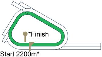 The track the horses are running on. The distance the horses will travel from start to finish during the race displayed in meters.
