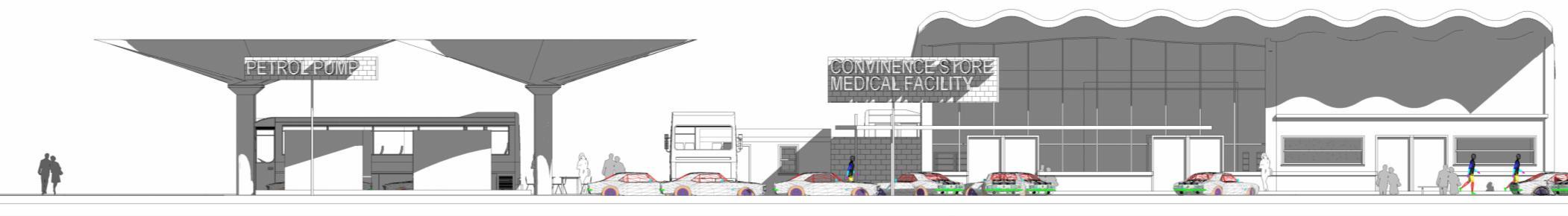 ▪ According to the study, the amenity center gives a break from the monotonous highway journey therefore, the pavilion is designed near the general store as a relaxation point for passengers'