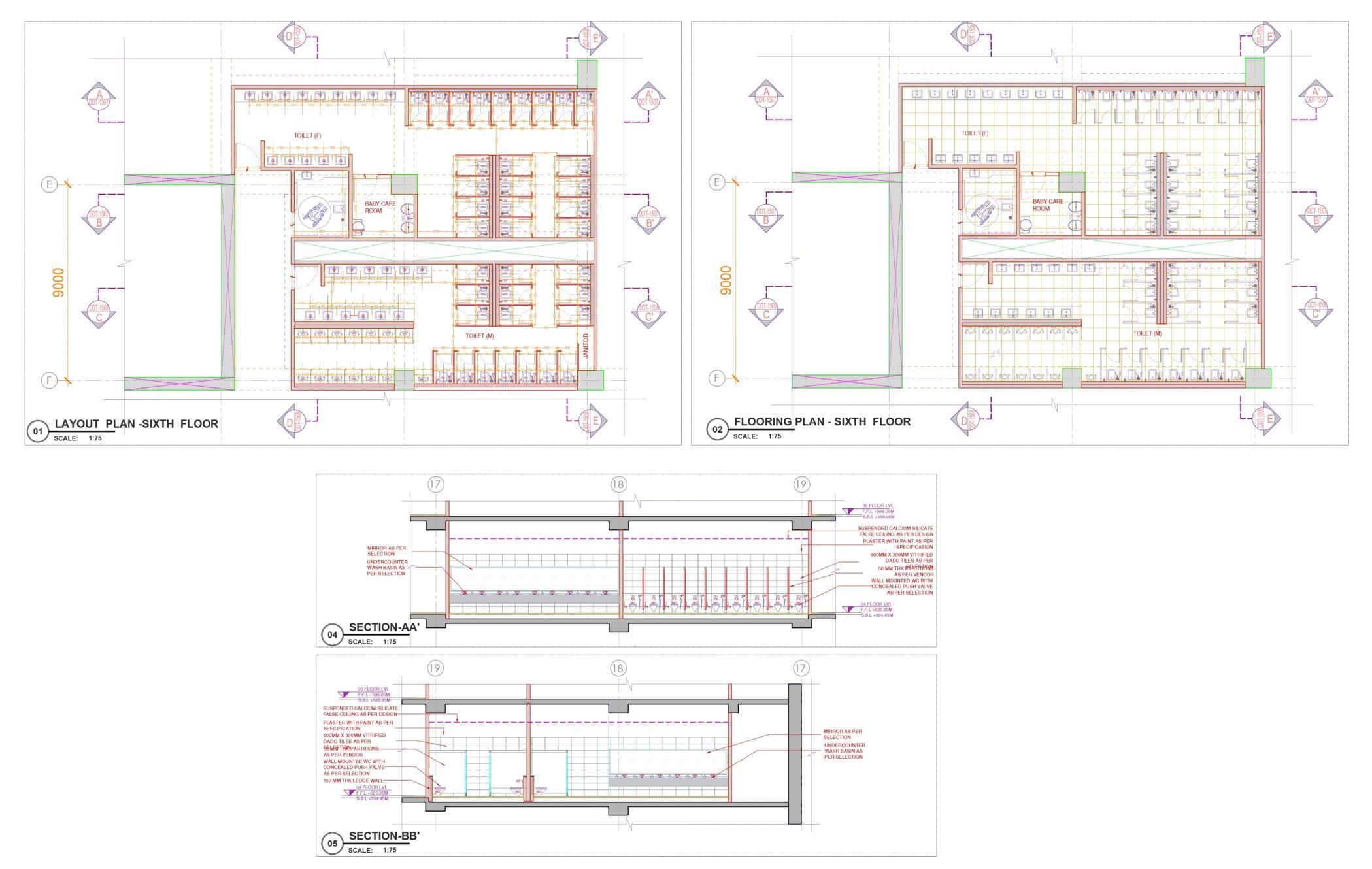 In my internship, I was responsible for designing the toilet layouts across four floors, each with two different toilet blocks. This task enhanced my skills in spatial planning and functional design.