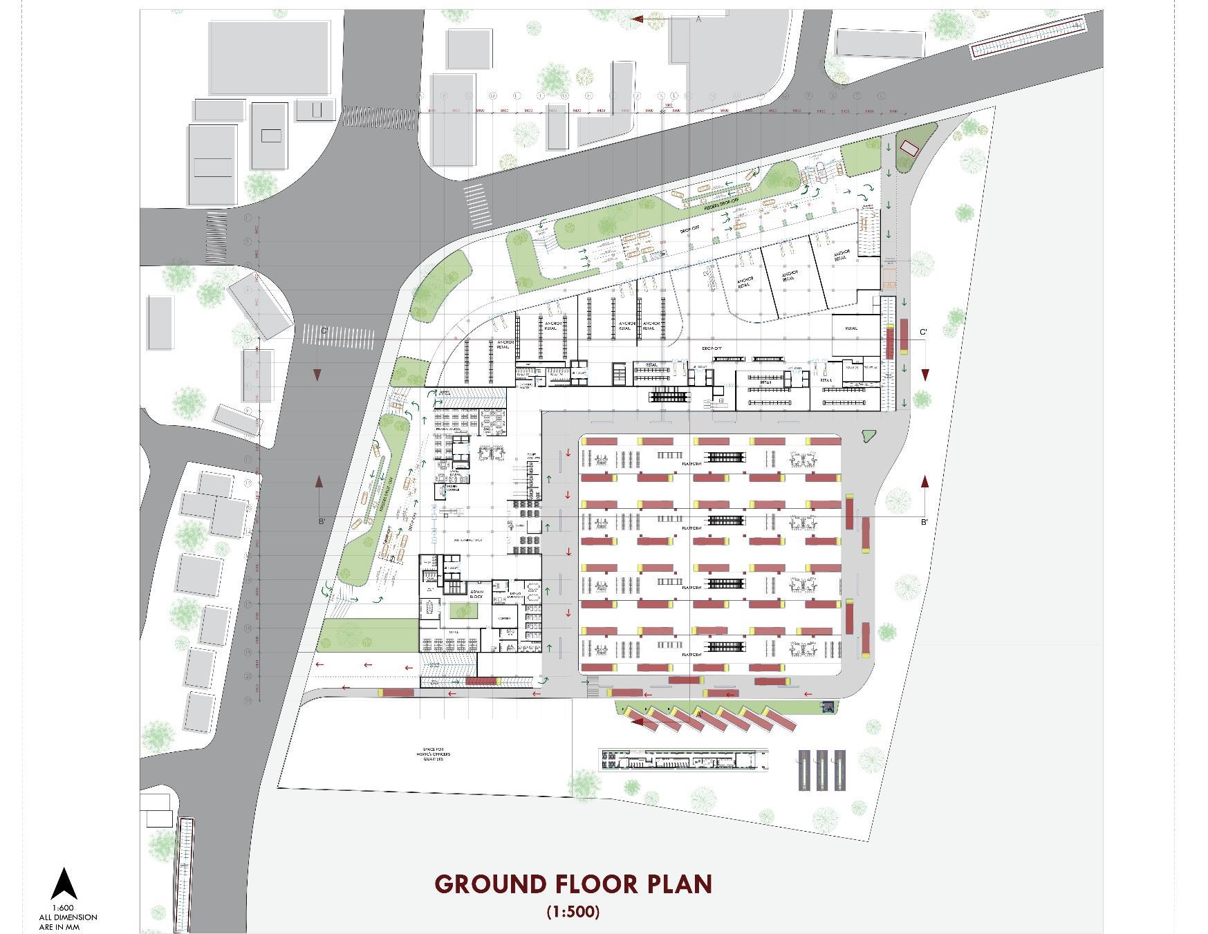 By proposing subways for the road the circulation becomes seamless without disturbing the traffic outside the site. It solves the issue of traffic congestion