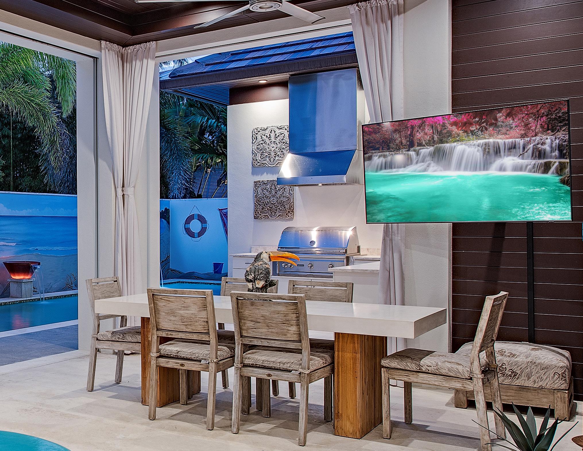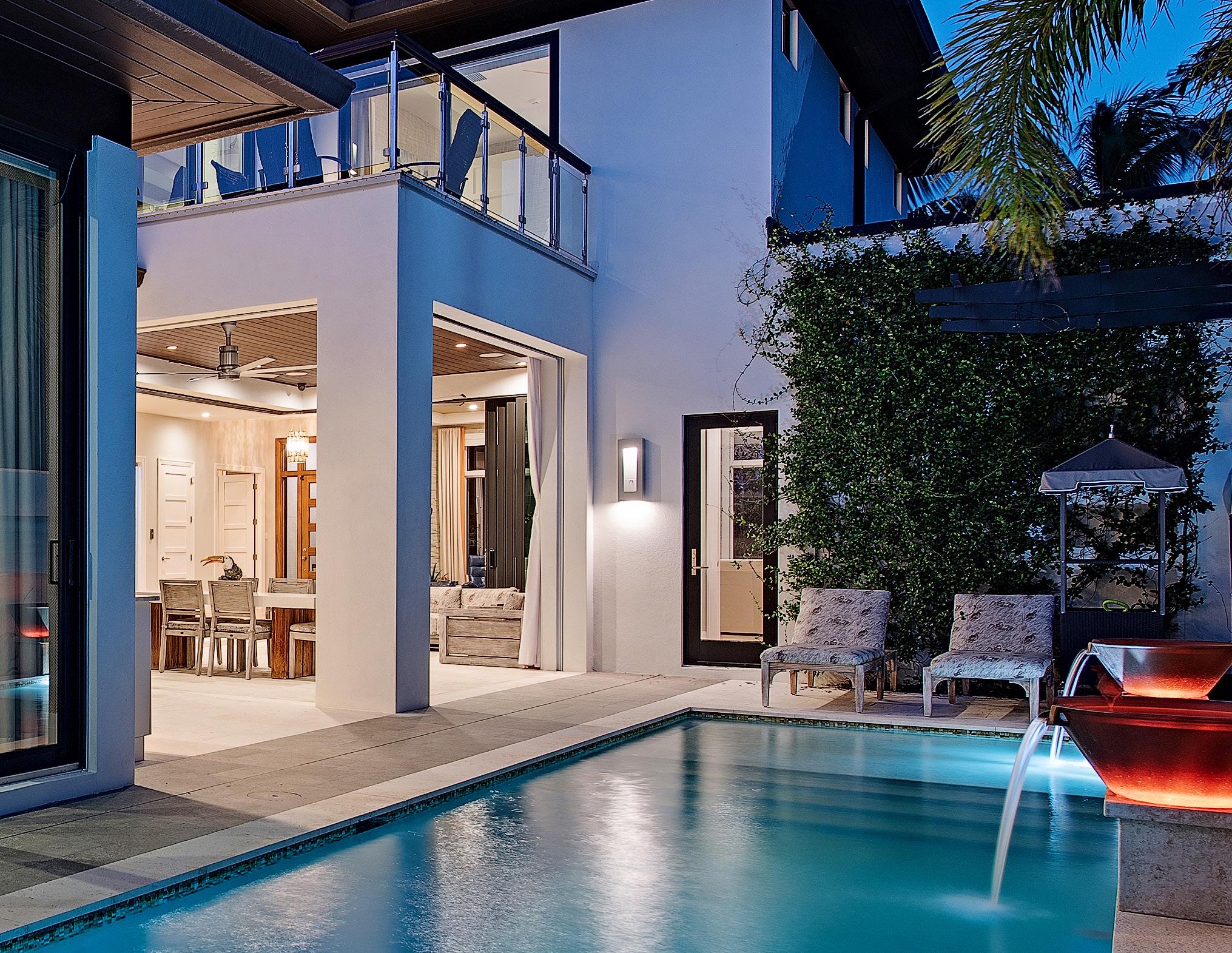 Just 70 steps from the Gulf of America and an effortless stroll to both Third Street South and Fifth Avenue South, this 2018 Stofft Cooney–designed beach-block residence captures timeless architecture, exceptional craftsmanship, and an unmatched location. Spanning over 4,450 square feet of air-conditioned living, the home features five bedrooms, an upper-level lounge with dry bar, temperature-controlled wine room, and three-car garage. Refined interiors showcase wide-plank oak flooring, Ruffino cabinetry, Taj Mahal quartzite surfaces, Sub-Zero/Wolf appliances, elevator, and Control 4 home automation with integrated sound and security. The outdoor living experience is equally impressive with a heated pool accented by water bowls, full summer kitchen, automatic screens and shutters, and lush tropical landscaping for privacy. Built of solid concrete construction and elevated at 12 feet, the home sustained no flood damage in recent storm events, ensuring peace of mind. Furnishings are available and this exceptional property represents one of the most desirable opportunities in the heart of Old Naples.