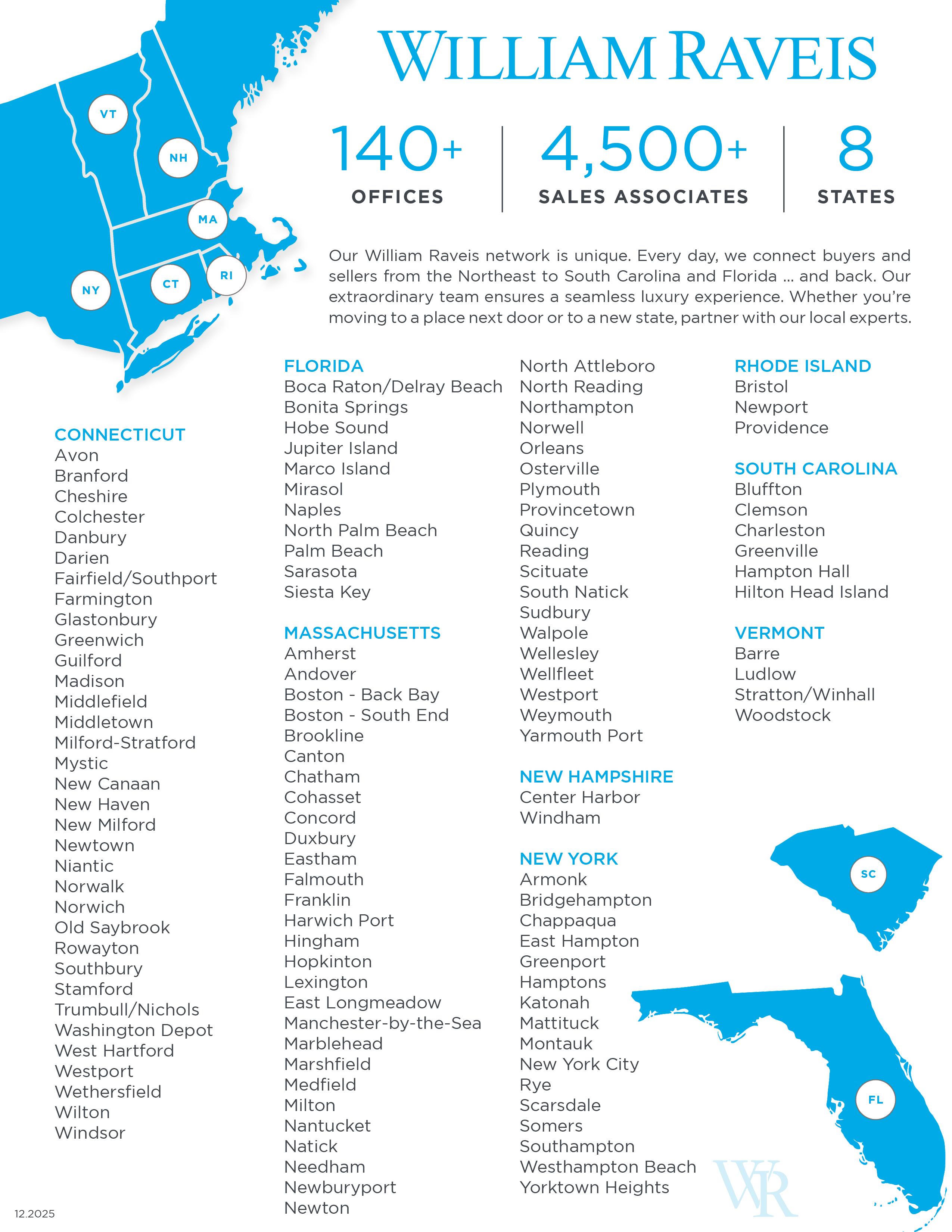 Through our robust advertising, digital media, and social channels; in concert with Luxury Portfolio International® and Who’s Who in Luxury Real Estate, our William Raveis Luxury Division promotes properties on a global scale.