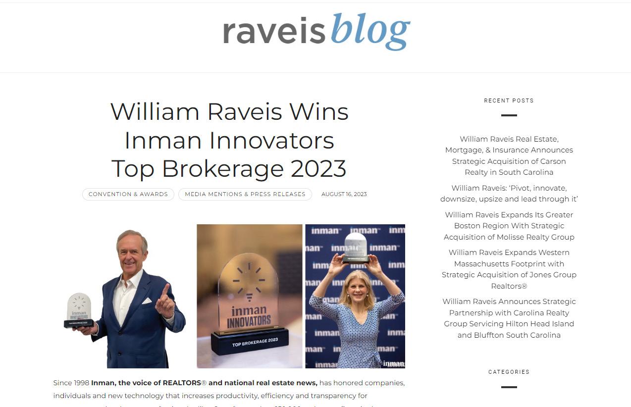 William Raveis is named Top Brokerage by Inman,¹ the voice for REALTORS® across the country. We excel at pushing old ways aside, reinventing technology in partnership with Microsoft, and providing the most comprehensive services in the real estate industry to benefit all sales associates and customers.