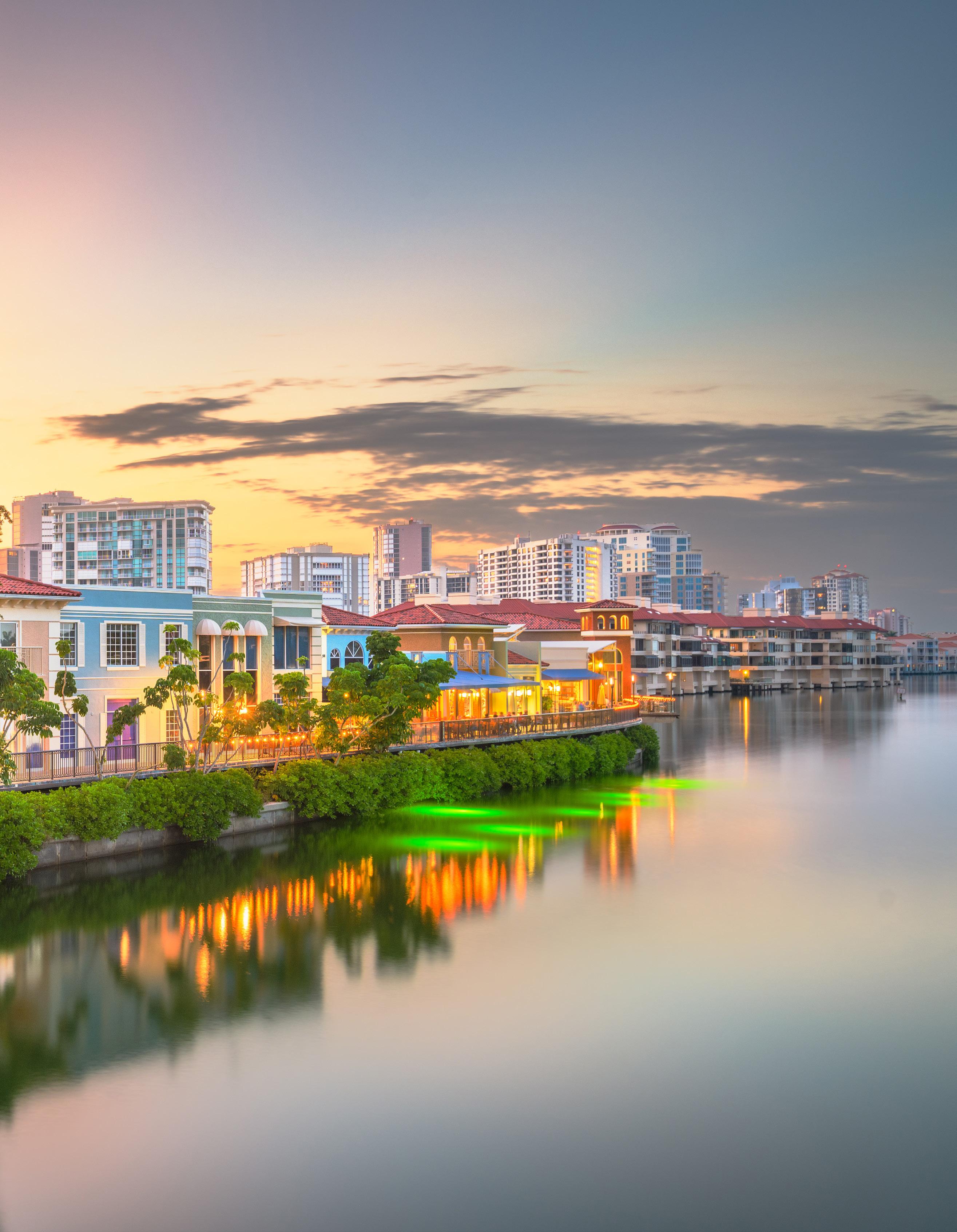 VenetianVillaswascompleted.Easilythemostsketched, painted and photographed buildings in Naples, Venetian Villas was created by Raymond L. Lutgert as a tribute to the Mediterranean-styled architecture. Representing a significantarchitectural andpermittingachievement, each ofthevillasisactuallybuiltoverthewater.VenetianVillas creates an incomparable Venetian ambiance not only for its residents, but also for all Neapolitans.