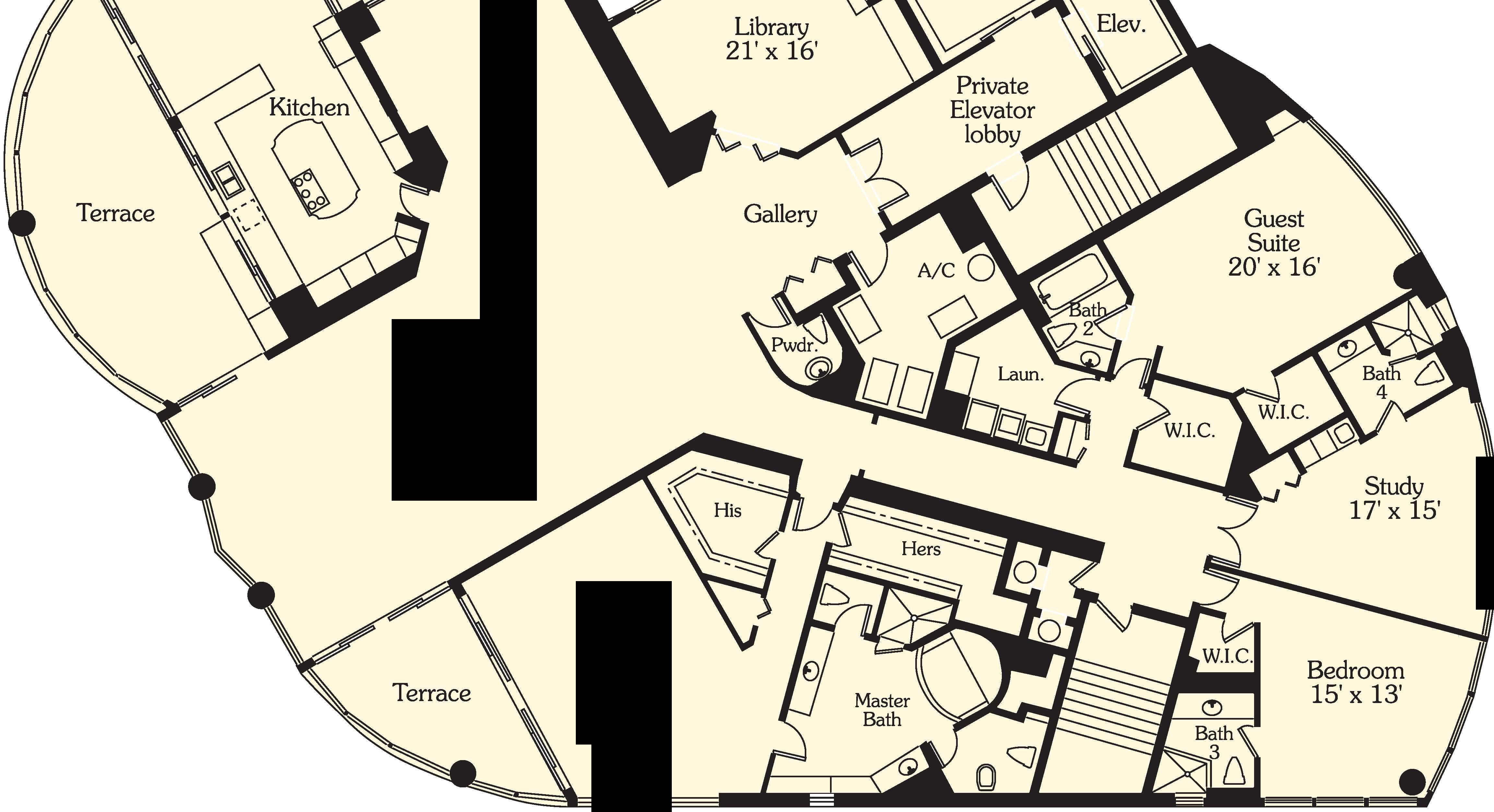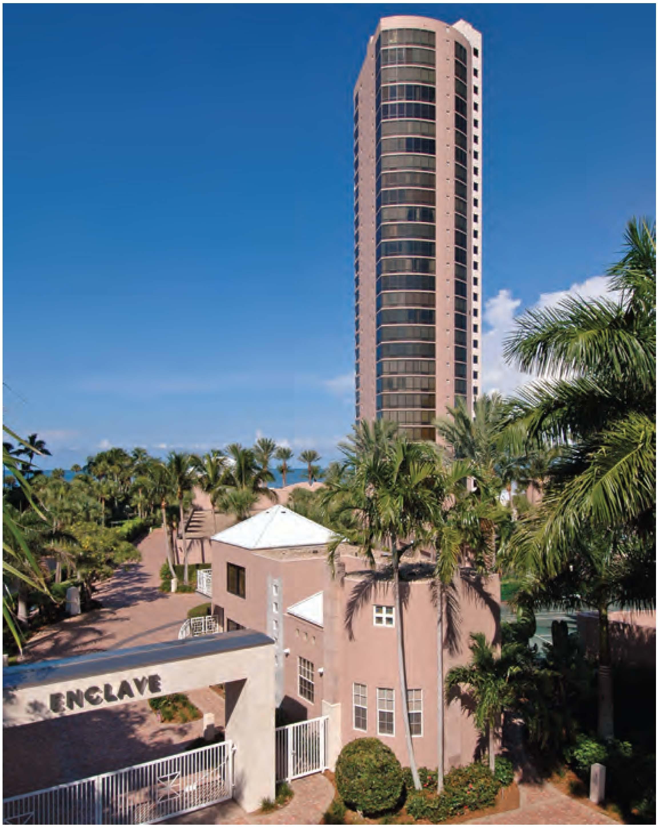 Enclave. InspiredbyRaymondandScottLutgert's desiretoblendtheassetsofaprivatebeachestate withtheconvenienceandprivacyofhigh-riseliving, Enclaveintroducedtheinnovativeconceptofasingle, spectacularresidenceoneachfloor.TheEnclave continuestobeoneoftheLutgerts'ultimate achievements.