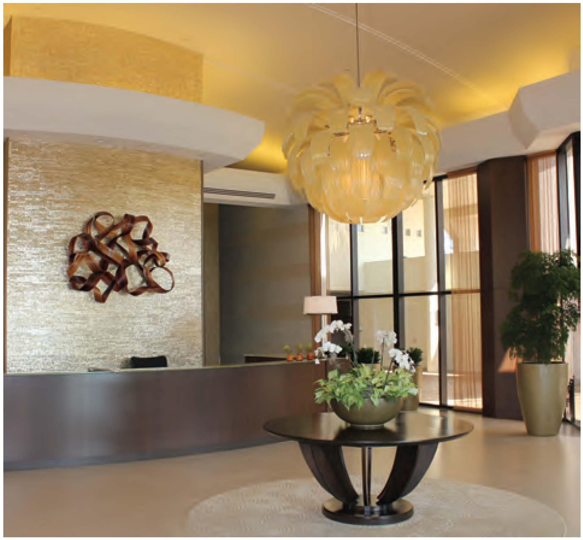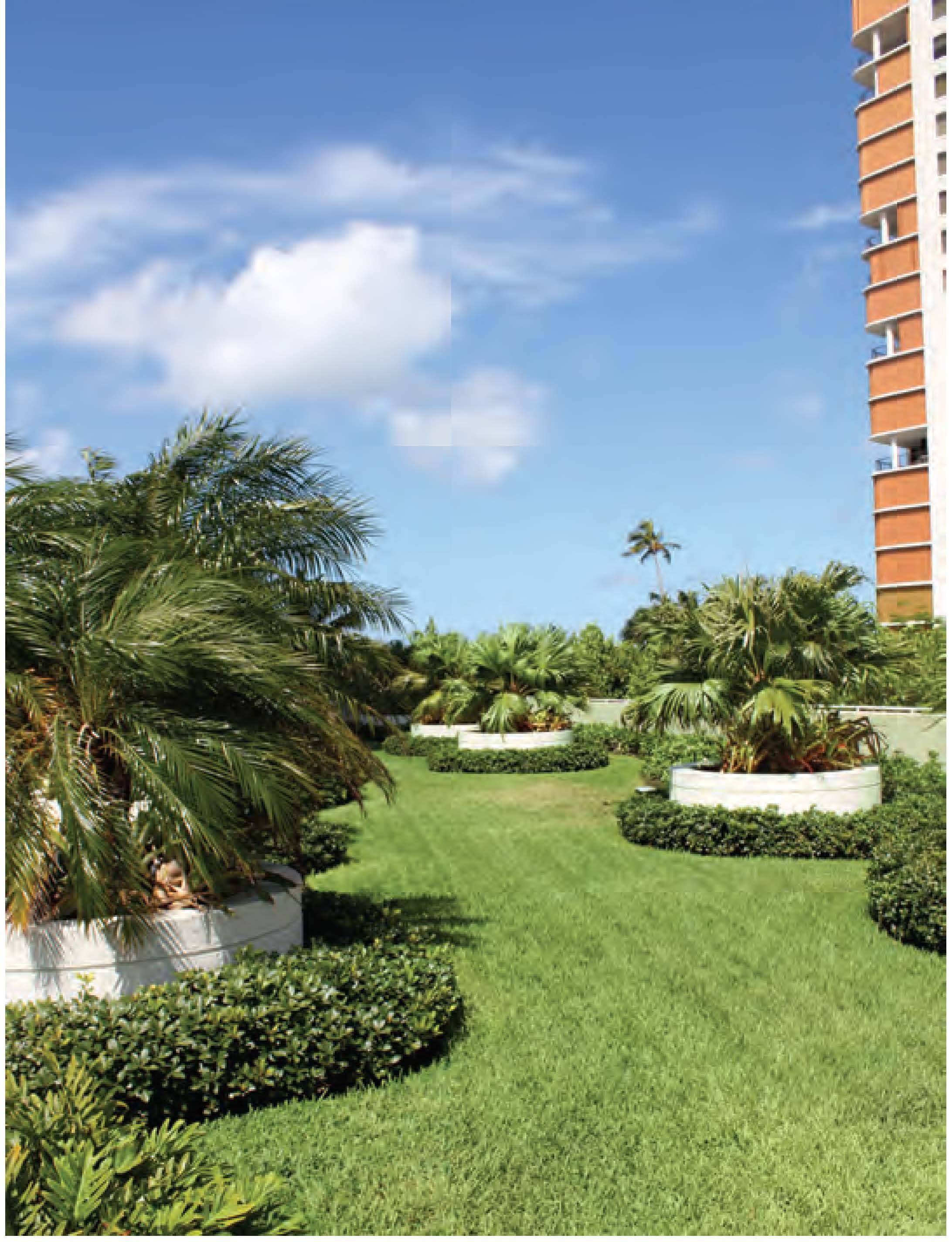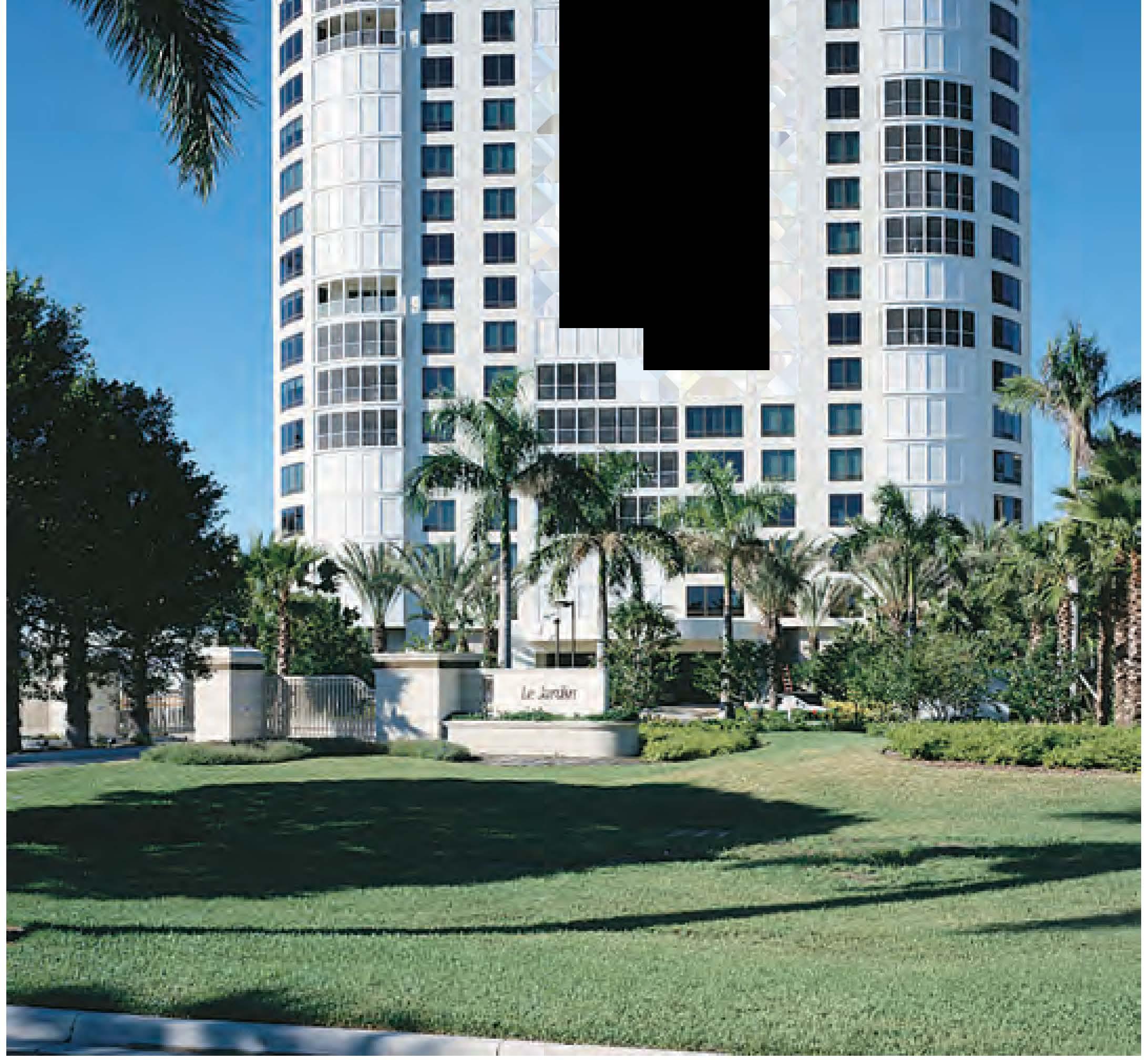 LeJardin. (TheGarden).Anelegantbeachfront condominiumwith20floorsand52residences,eachof whichhasaprivateelevatorlobby.