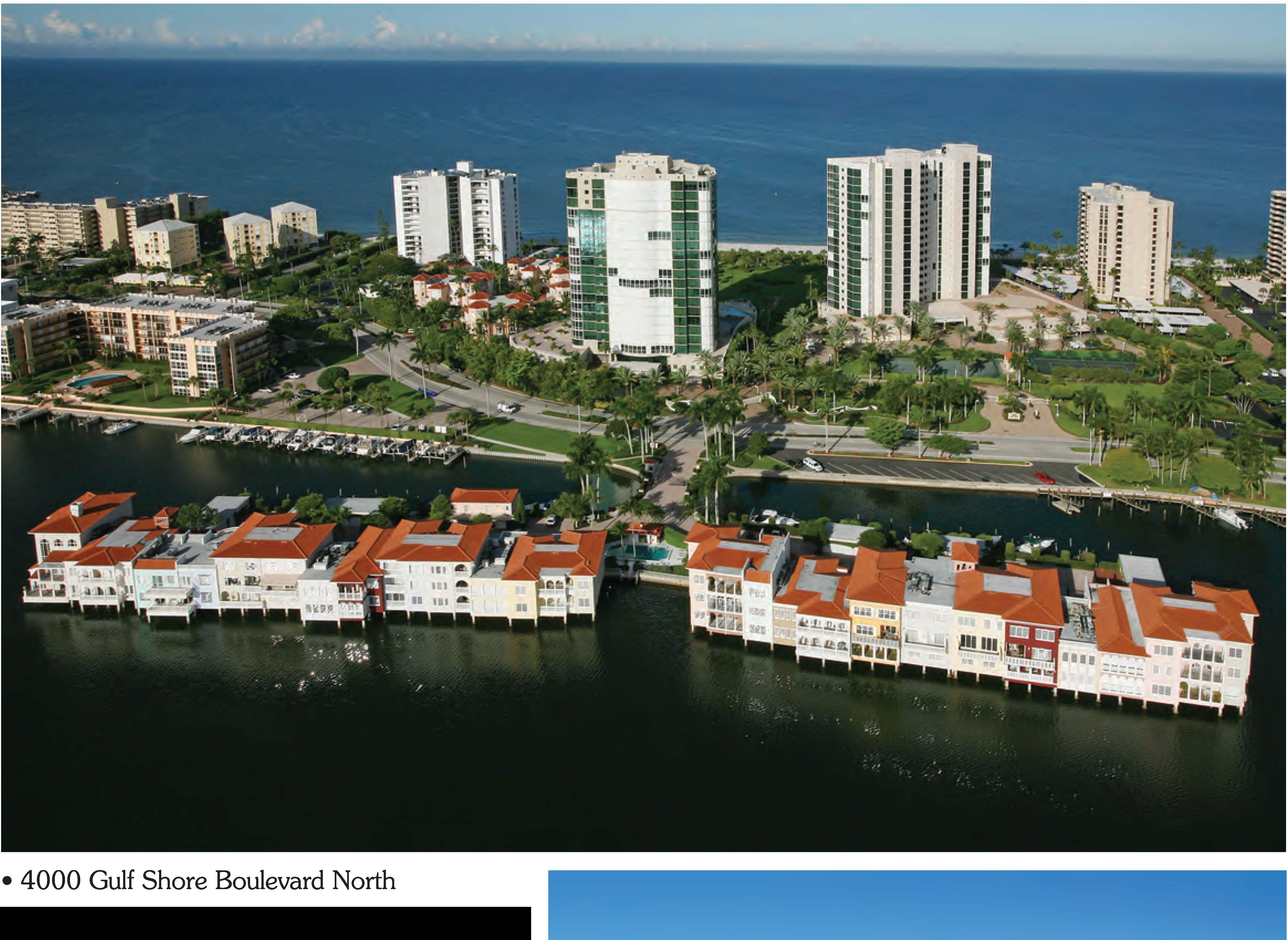This guide to Park Shore “Along the Boulevard” was created and produced by us to offer relevant, useful information as well as be a tactile, visual and thoroughly engaging experience for anyone interested in either buying or selling real estate in Park Shore. Beginning with a site map and a brief history of the area, the guide features all the high-rises and villas “Along the Boulevard”. We have included a full description of each building, all floor plans, color photos of the amenities and aerial photographs. Our goal is that by offering this comprehensive guide, interested clients will have the knowledge that is necessary to make informed and educated real estate decisions. The guide also serves as a concierge guide for Pelican Bay & Bay Colony residents and a resource book to help homeowners maneuver throughout buying, renovating, decorating or selling a home. Our hope is that you find this book both useful and enjoyable and if you are considering buying or selling a home ..... consider us.