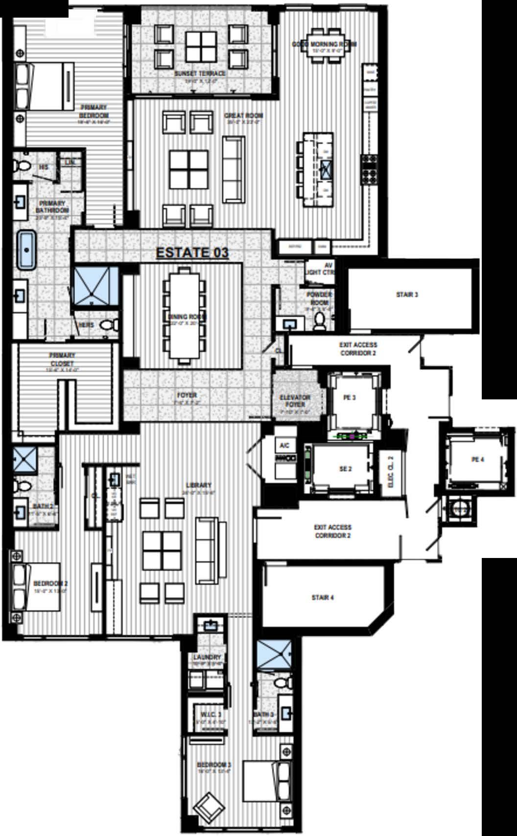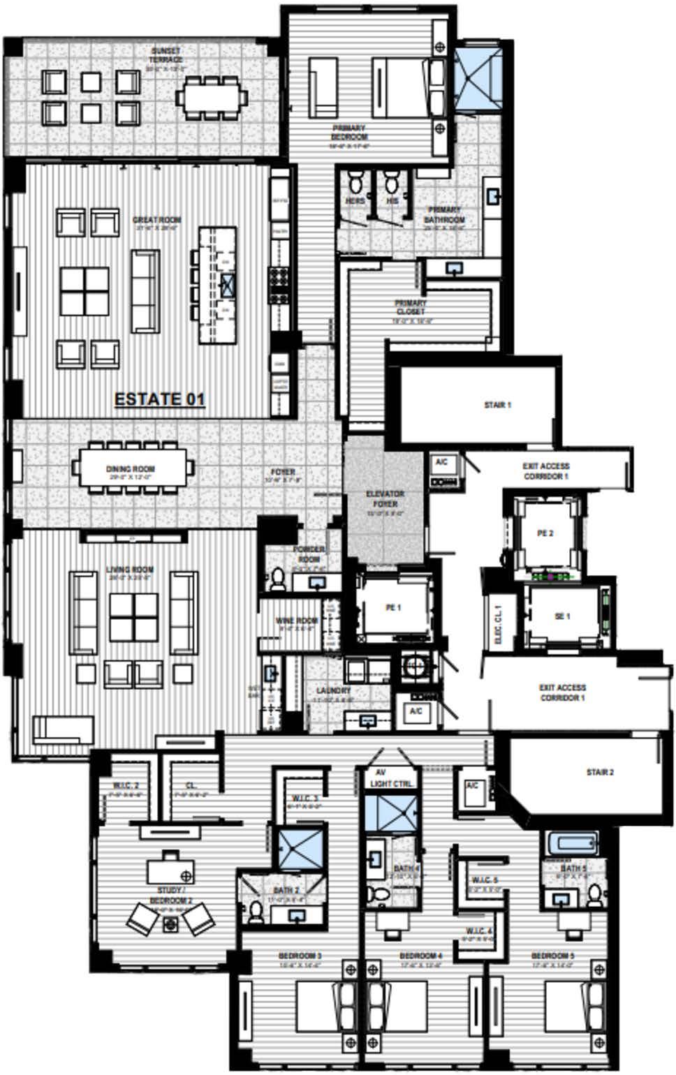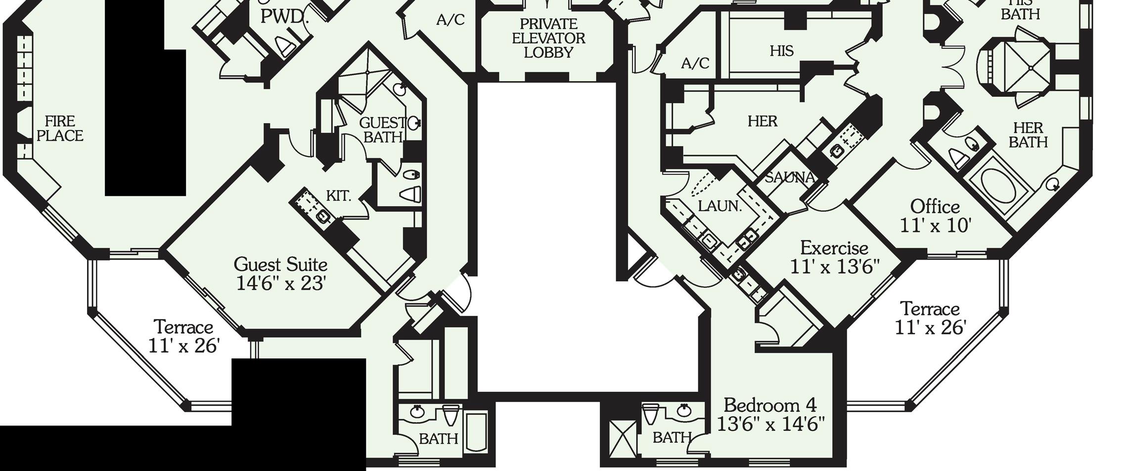•4 High-Speed Elevators, Open to Common, A/C Lobby Servicing 2 Residences