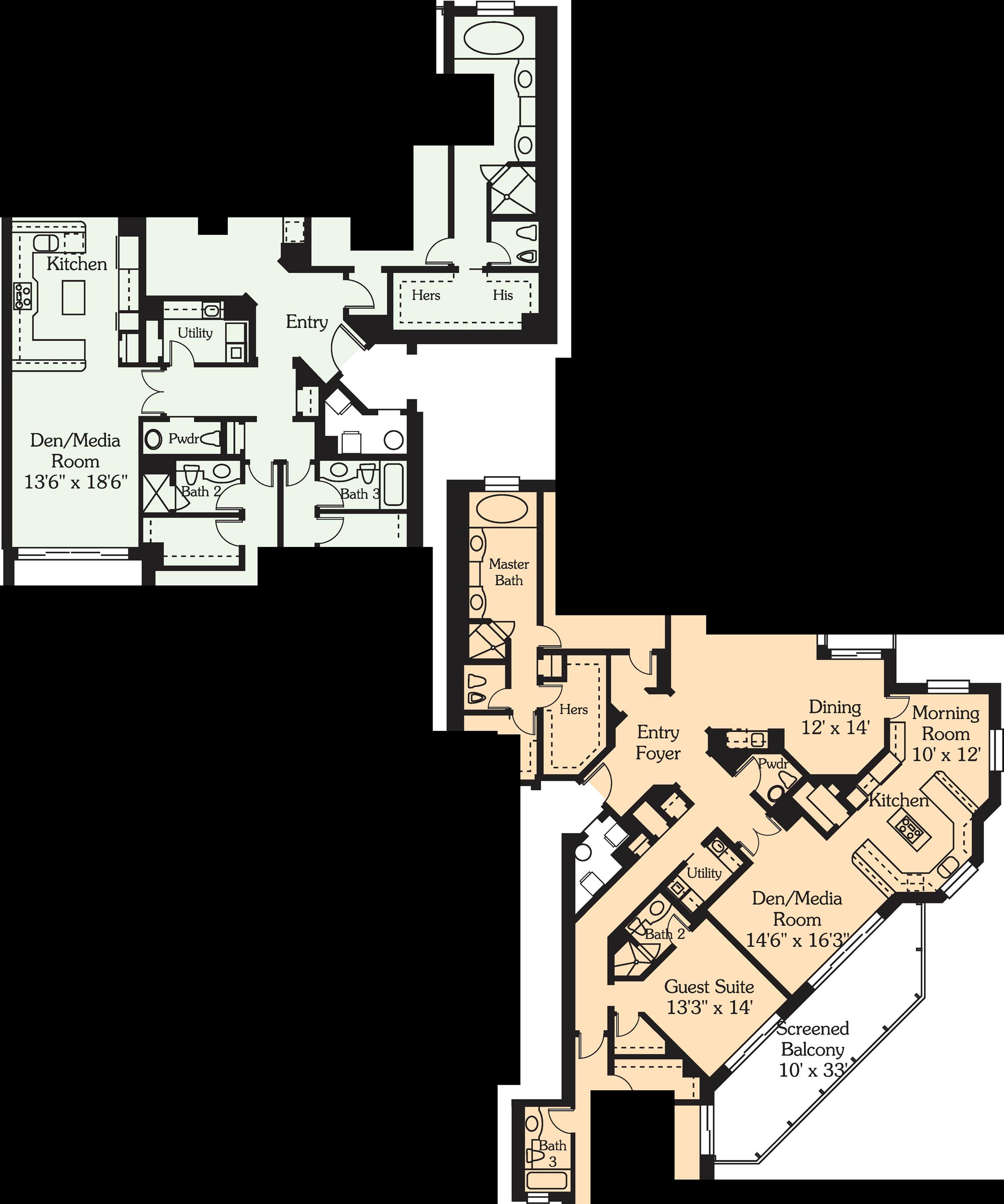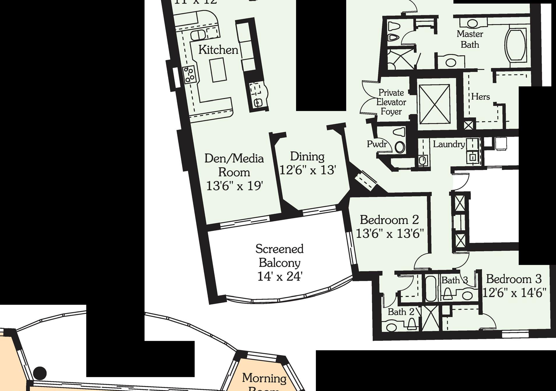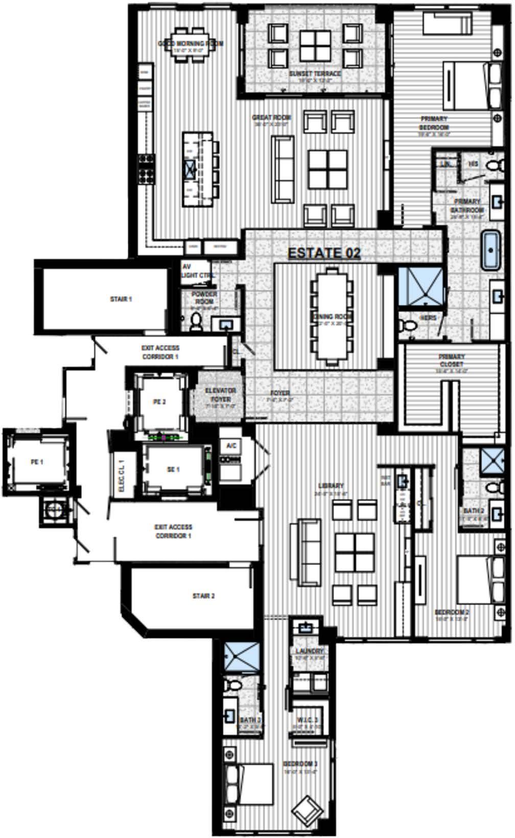 •4 High-Speed Elevators, Open to Common, A/C Lobby Servicing 2 Residences